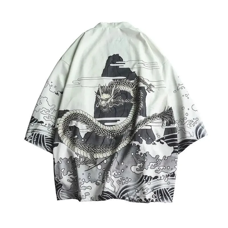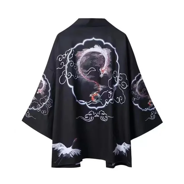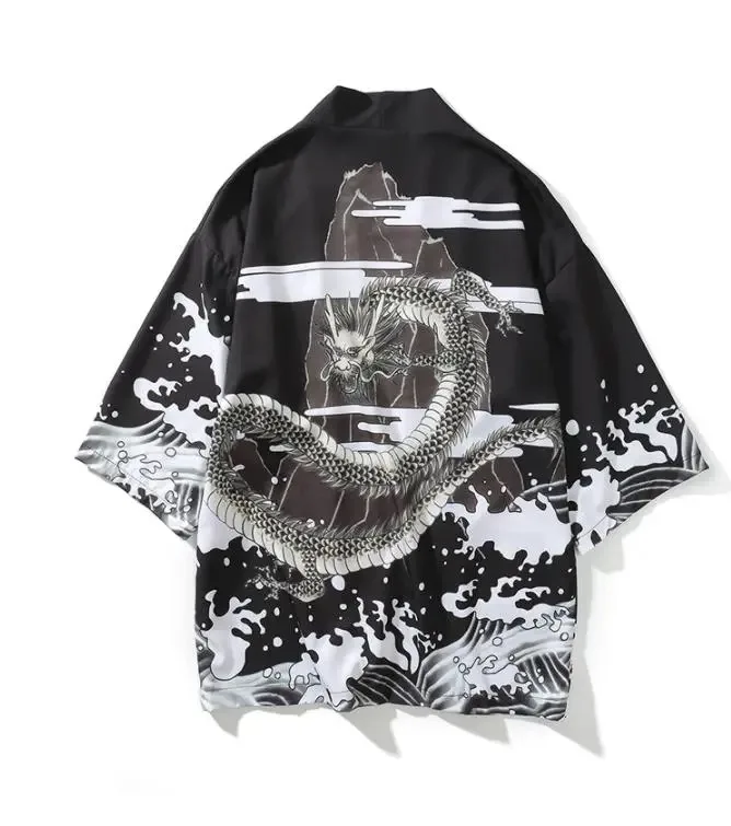 Японские кимоно для мужчин кардиган рубашка блузка юката для мужчин Haori оби одежда самураев мужской узор в виде дракона, кимоно, кардиган