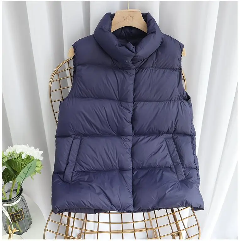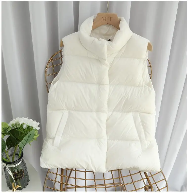 Janveny; Сезон осень-зима ботинки с ультра светильник пуховой жилет Повседневный тонкий жилет 90% белый пуховик на утином пуху жилет женский пуховик Куртка размера плюс