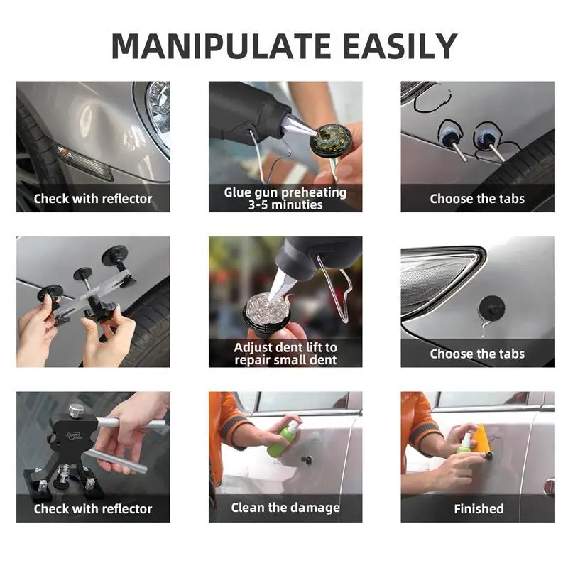 Различные вкладки для различных вмятин подъемник или Молот скольжения, работает со всеми клеевые съемники.Прочная конструкция обеспечивает идеальное расположение и превосходные адгезионные свойства.Мы рекомендуем очистить их спиртом, прежде чем использовать эти клеевые вкладки.