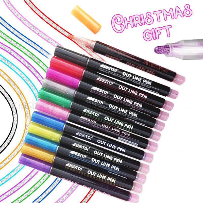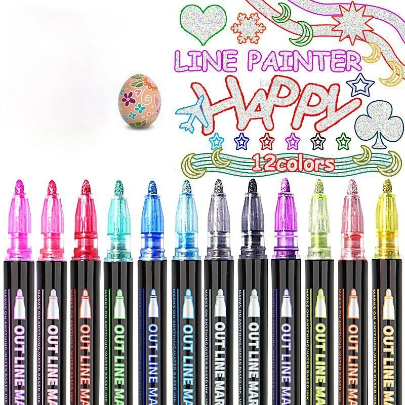 Двухсторонний маркер для рисования, 12 цветов, альбом сделай сам для скрапбукинга, металлический маркер, хайлайтер, рисование, рисование