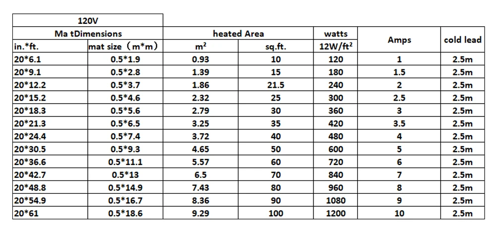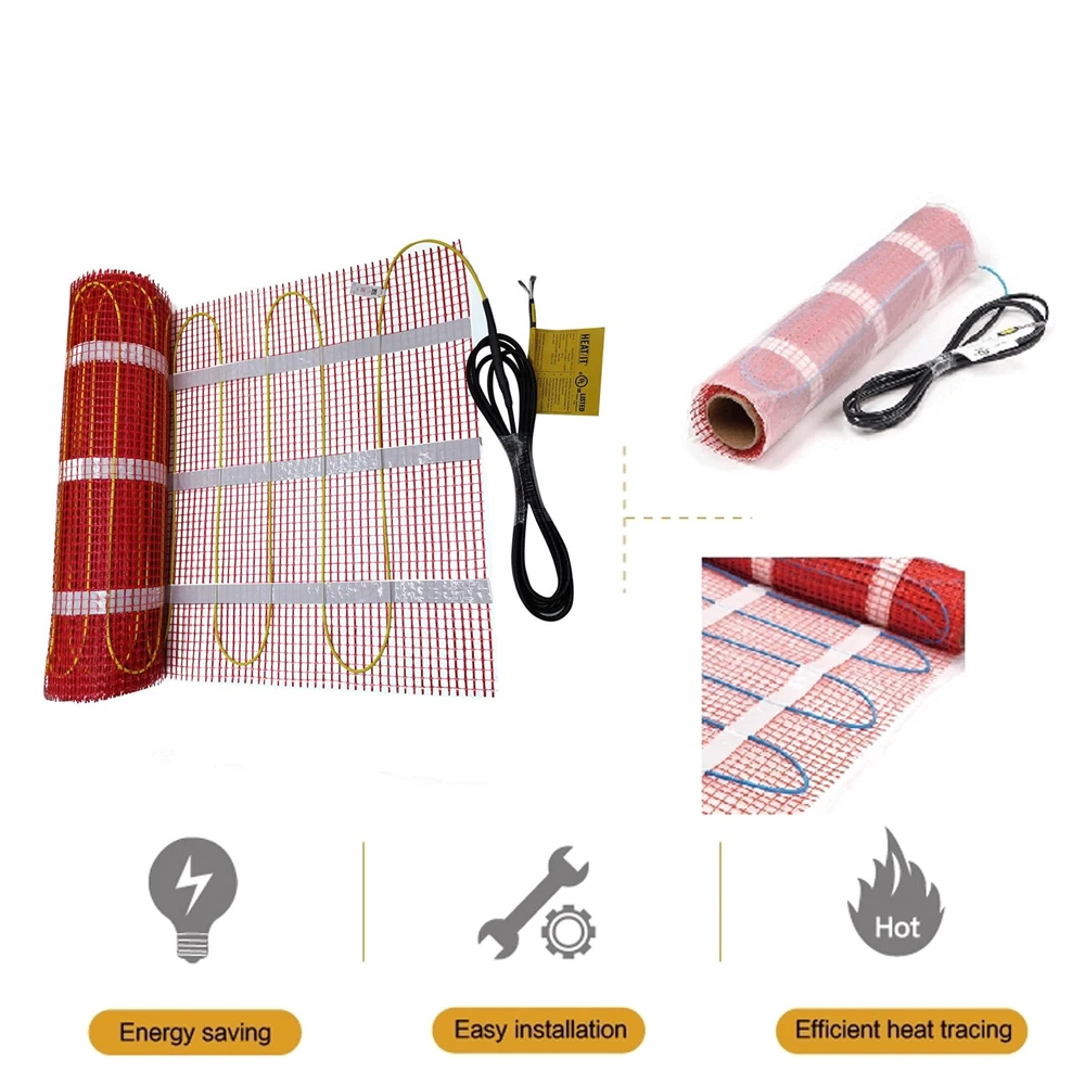 1. Теплый коврик был использован под многими популярными напольными материалами, такими как керамическая плитка, натуральные камни, дерево и так далее. Нагревательный коврик состоит из нагревательного кабеля, защищенного двусторонней лентой на сетку из стекловолокна.2.UL для США и Канады. Фторполимер (один из самых тяжелых пластиковых материалов) в качестве изоляции. Используется для влажного применения, но не для установки в бассейнах и спа-салонах, а также для использования на открытом воздухе. 25 лет ограниченной гарантии на нагревательную сетку. Ограниченная гарантия действительна на основе правильных методов установки и выполнения всех требований к испытаниям.3. Напряжение коврика: 120 В, выход: 12 Вт/кв. М. Желтый нагревательный элемент нельзя разрезать. Сетчатый материал можно разрезать, чтобы сделать поворот и углы для нагрева практически любой области формы. Более детальный процесс установки приведен в инструкции.Сверхтонкий и прочный нагревательный элемент (всего 1/8 "толстый), предварительно разделенный провод, прикрепленный к жесткой сетчатой подложке из стекловолокна, кабель не может быть отрезан, но Матирование может быть, чтобы вы могли повернуть угол или обратное направление.4. Полностью самоклеящаяся Подложка для удобства укладки вместе с полными и комплексными инструкциями по установке для вашего удобства. Используется в сочетании с контроллером термостата. Легко установить в вашу душевая комната, кухонную комнату, влажную комнату, гостиную, теплицу и так далее.