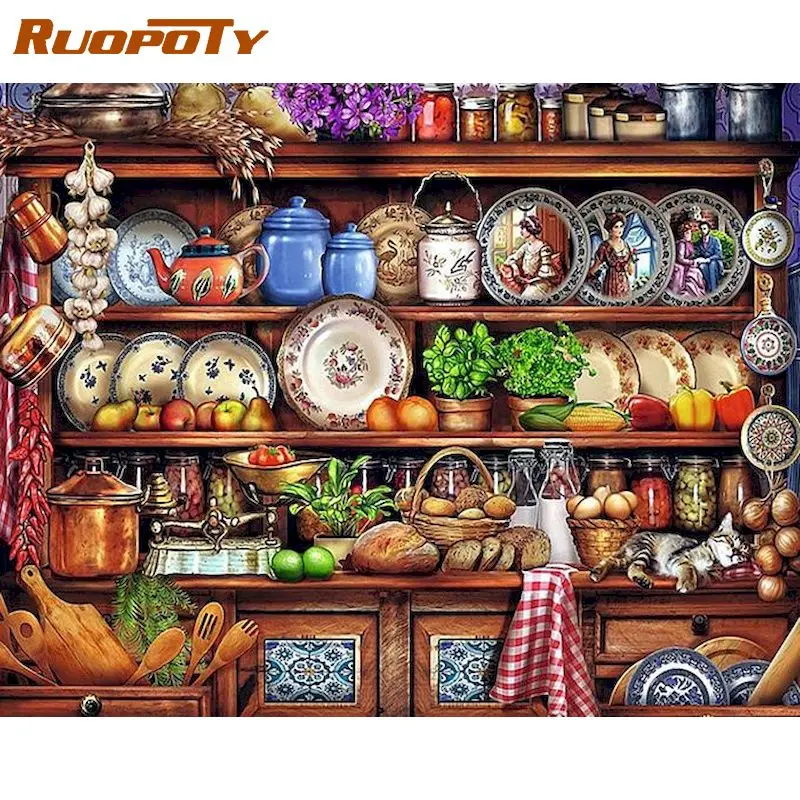 Краска по номерам RUOPOTY 60x75 см, пейзаж сделай сам для кухни, комнаты, настенное искусство, масляная краска в рамке для взрослых, украшение для дома, подарок