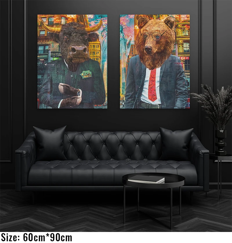 Современная картина с изображением медведя и быка, гепарда, холст, стоковый рынок, настенный художественный плакат, настенные уличные модульные картины, декор для офиса и дома