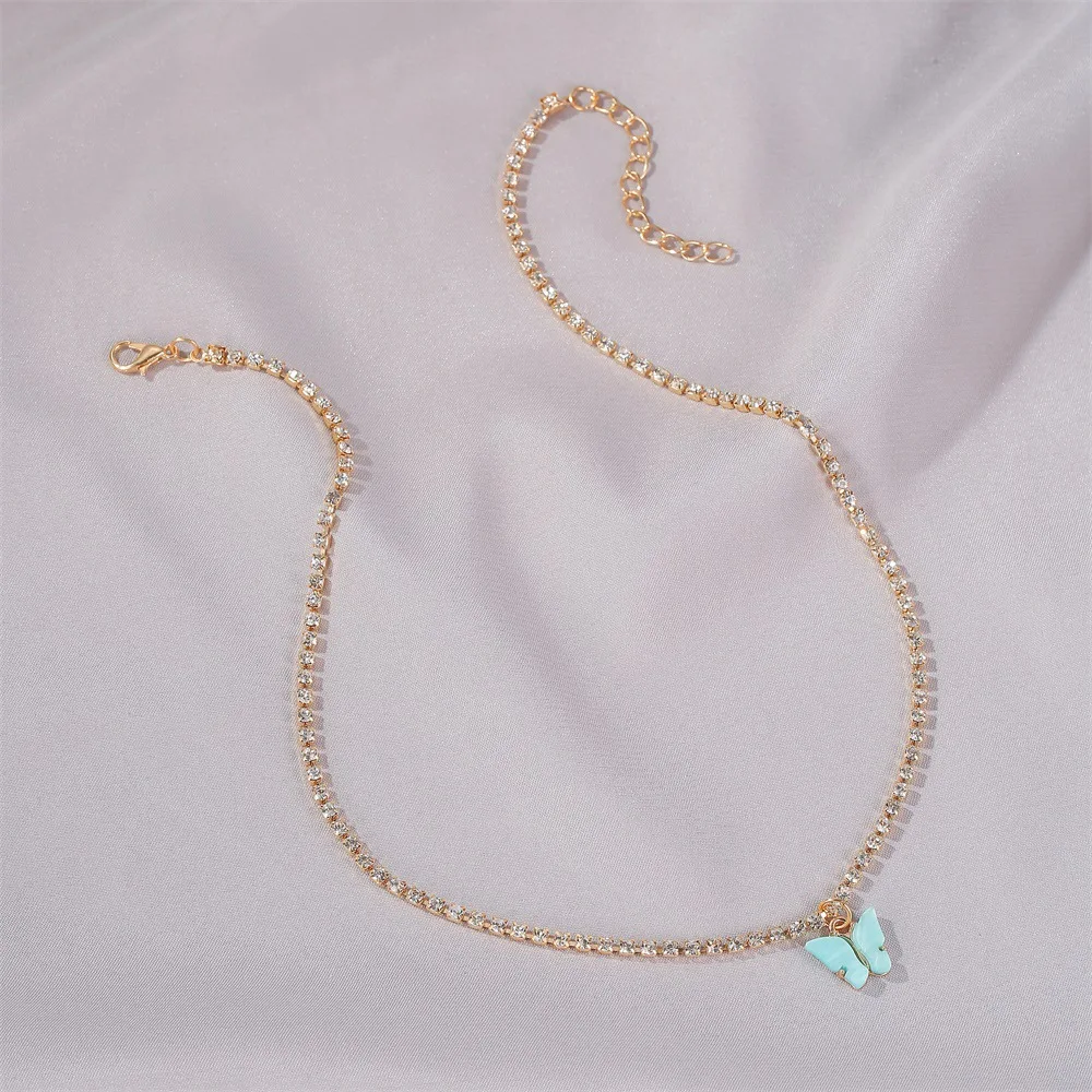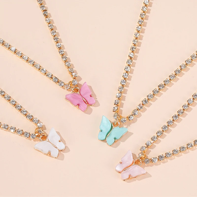 Женское акриловое ожерелье-чокер, с бабочкой и стразы