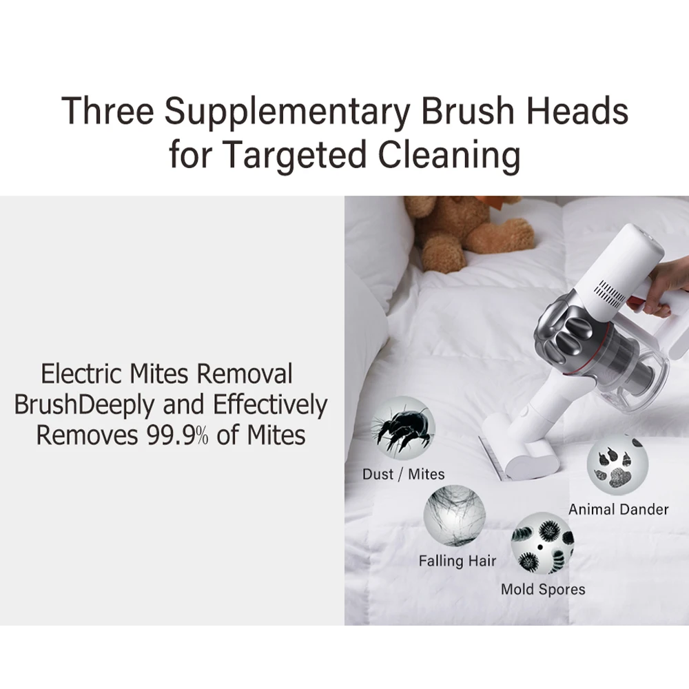 Сильное всасывание может эффективно удалять пыль, клещей, перхоть и другие аллергены с поверхности постельного белья, дивана, тканевой мебели и т. д., а степень удаления клещей достигает 99.9%. Забота о здоровье вашей семьи
