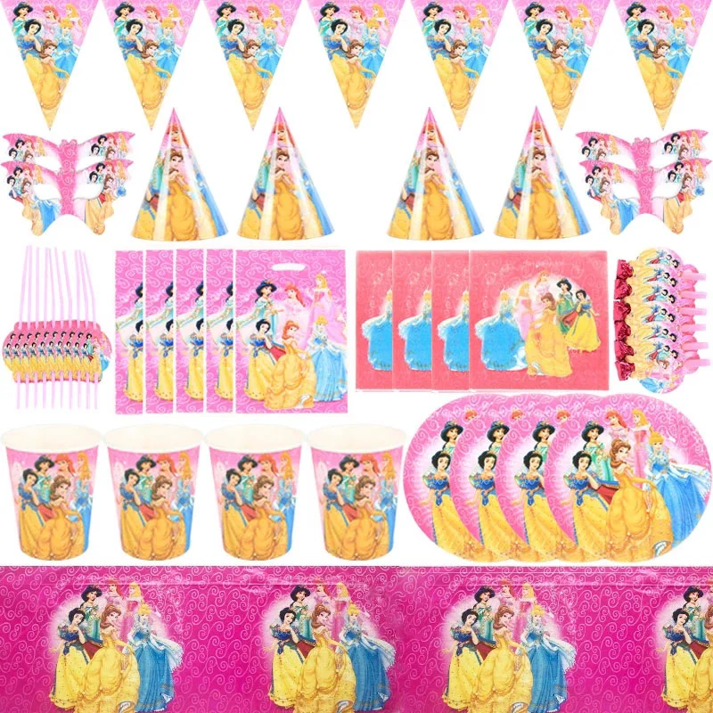 Праздничный набор Принцессы Диснея для дня рождения, Подарочная сумка принцессы, салфетки, бумажный стаканчик, тарелка, Вечерние Маски предметы для вечеринок, детский Декор на день рождения