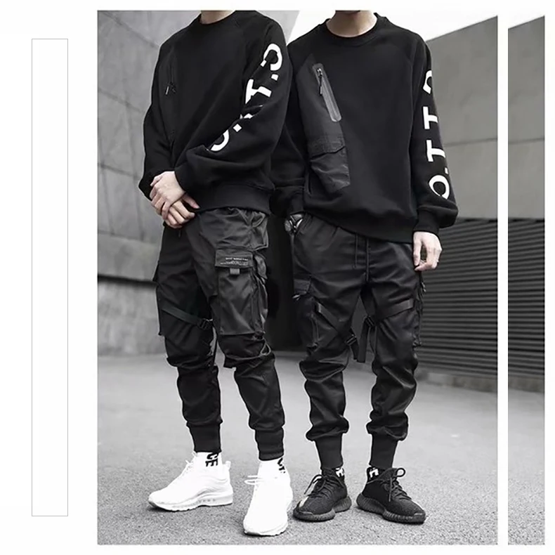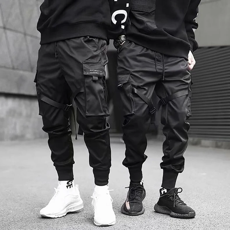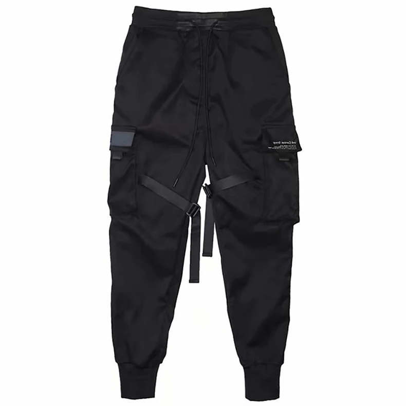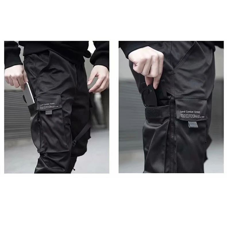 Брюки-карго мужские, с лентами и несколькими карманами, черные, 202...