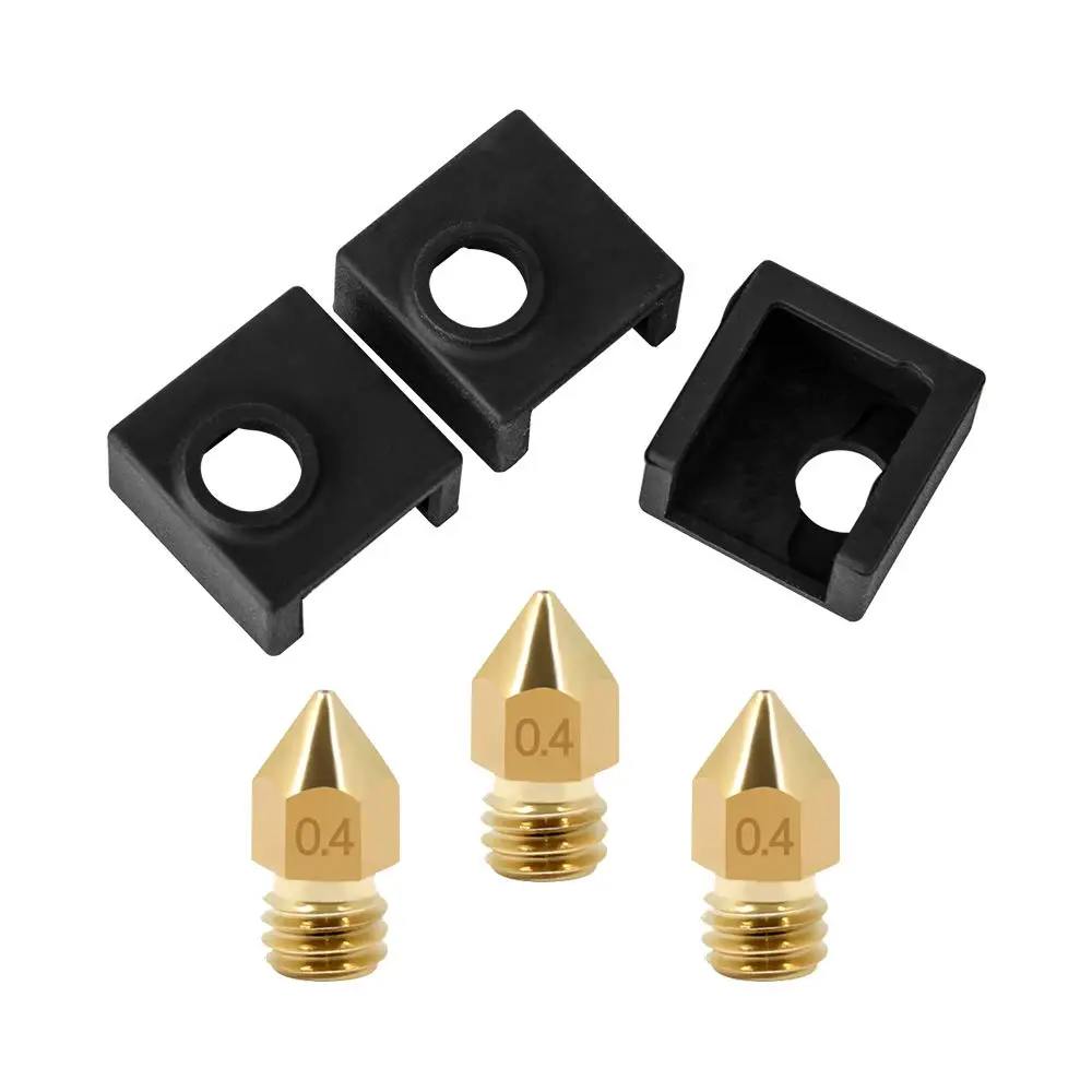 3 предмета в комплекте силиконовые носки и 0,4 мм Экструдер Насадка для всех MK8 M6 MakerBot RepRap 3D принтеров. Работает для HotEnds, которые используют блок нагревателя MK7/8/9. Это помогает сохранить ваш нагреватель чистым и свободным от сгоревшего и потемненного пластика.