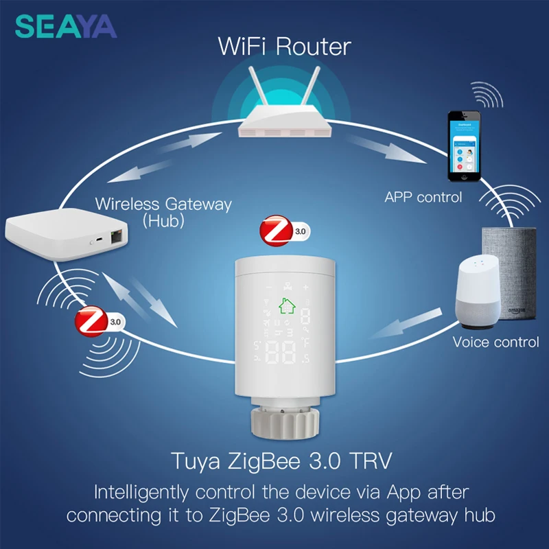 Умный привод радиатора SEAYA Tuya ZigBee3.0, программируемый термостатический клапан радиатора, регулятор температуры