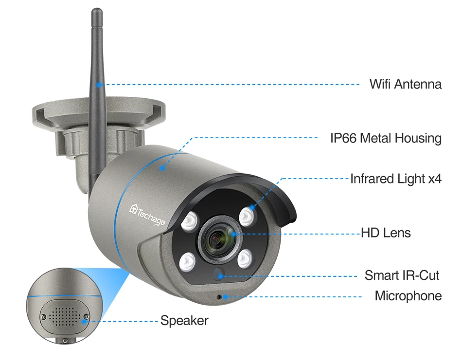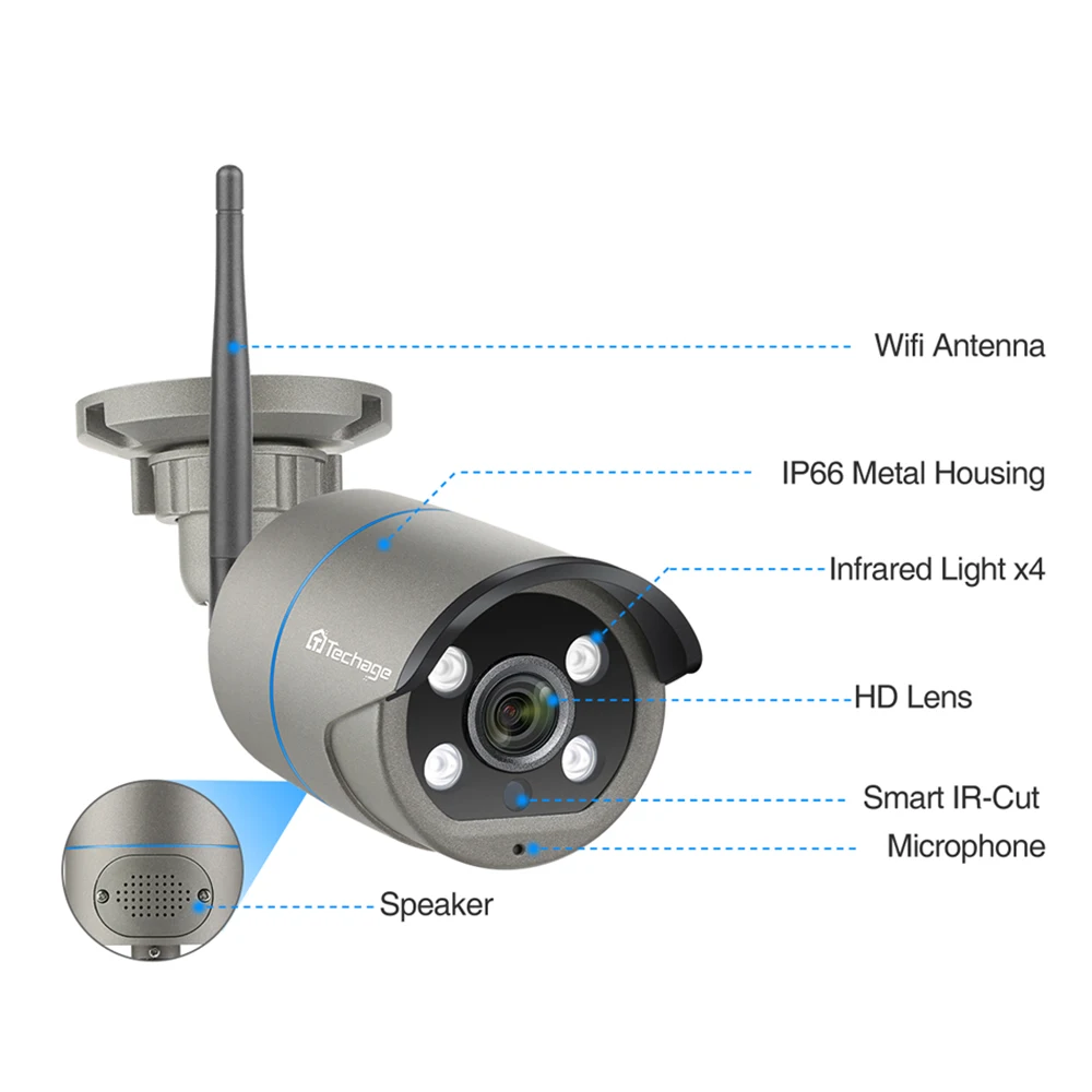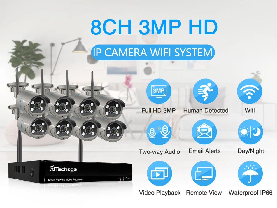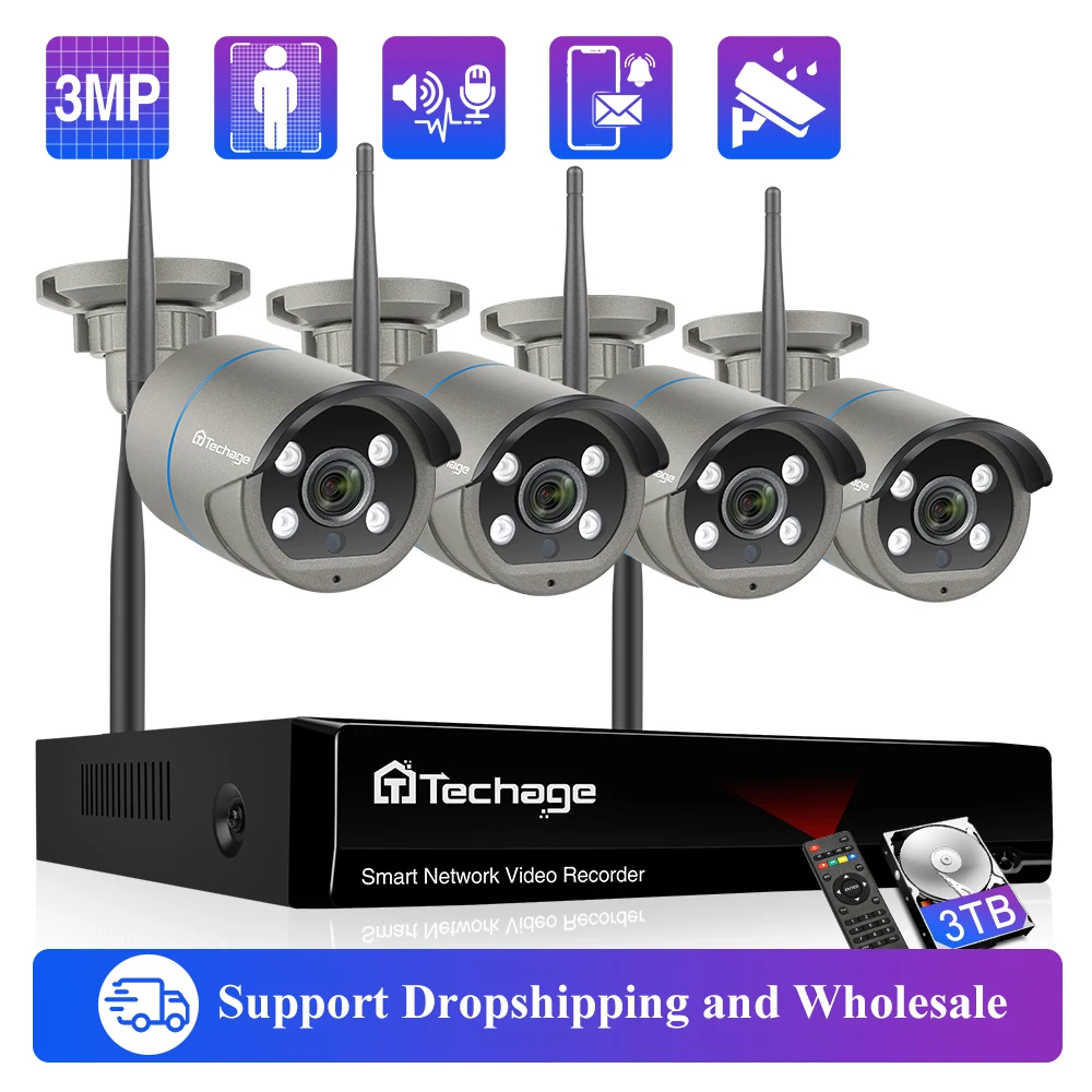 Беспроводная система камер Techage HD 3 Мп наружная Wi-Fi IP-камера Двусторонняя аудиосвязь распознавание человека Домашняя безопасность CCTV видео P2P