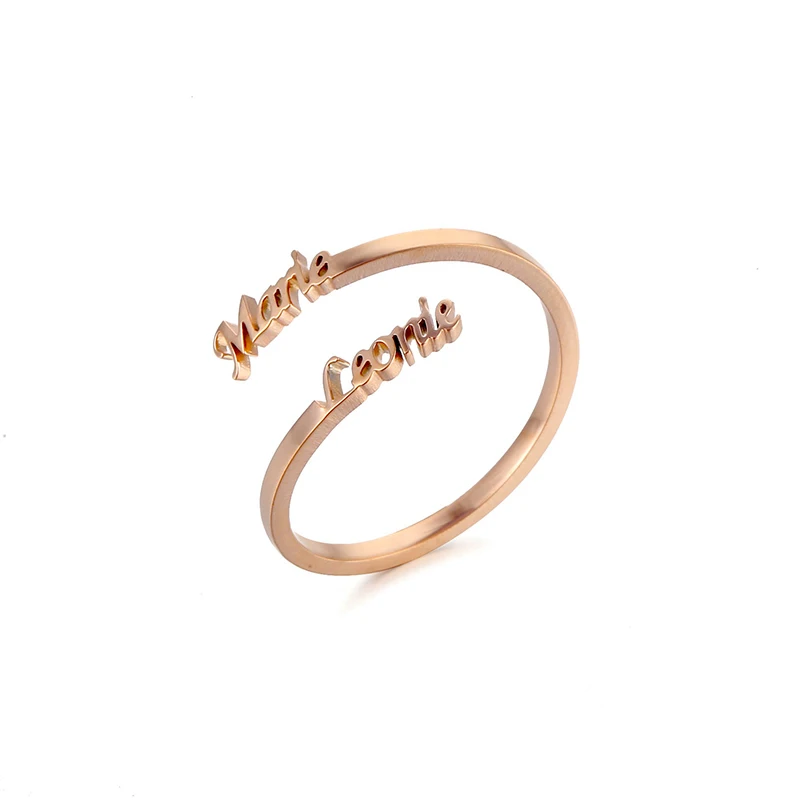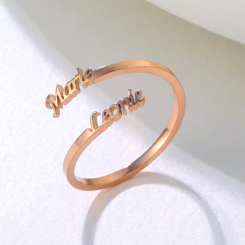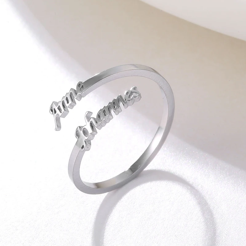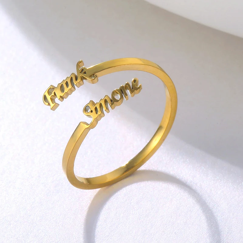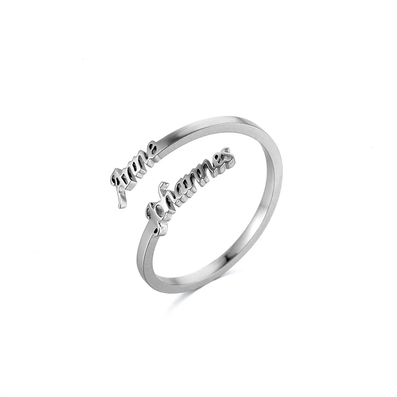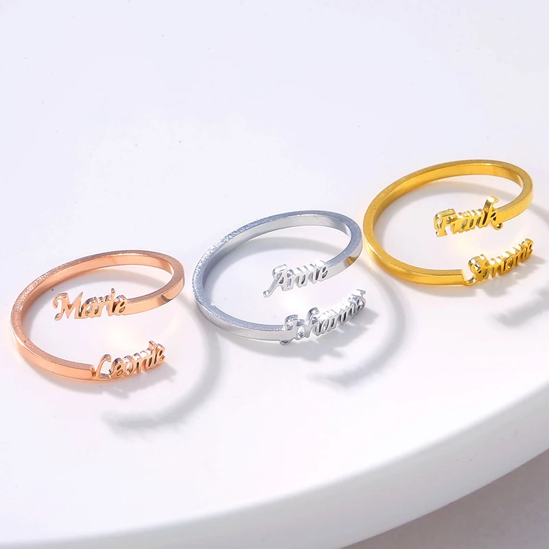 Индивидуальные индивидуальные двойные кольца с именем для женщин, регулируемое модное кольцо из нержавеющей стали с золотыми буквами, именная табличка, ювелирные изделия