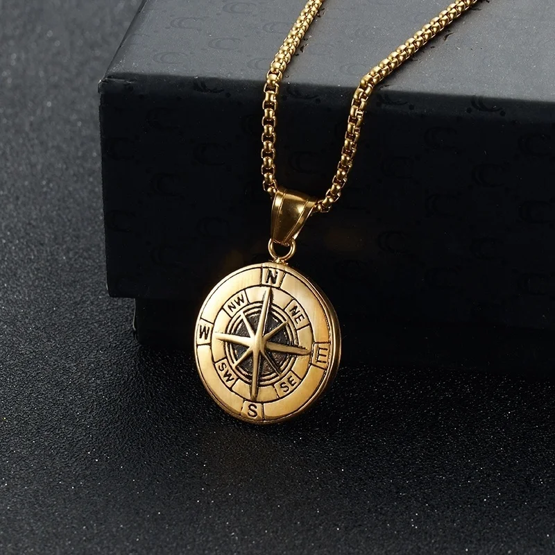 Винтажное мужское ожерелье с компасом, звездами, буквами и круглым кулоном, ювелирные изделия