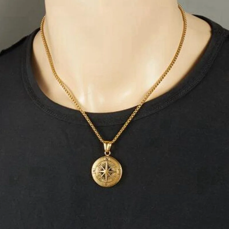 Мужское ожерелье металлический кулон Круглый Подвеска с компасом Ре...