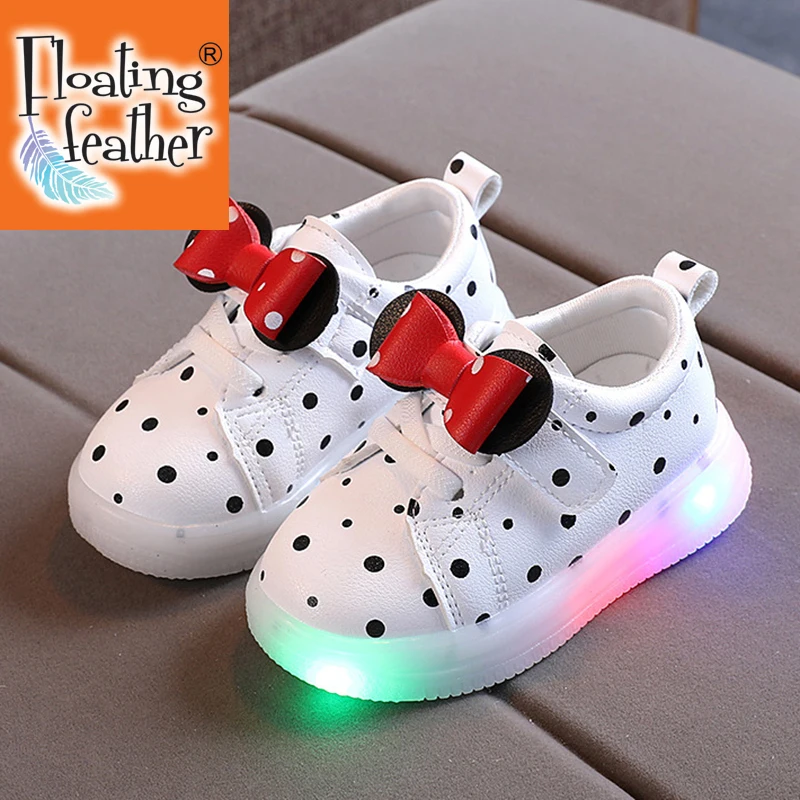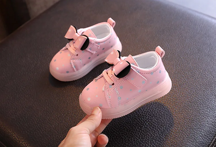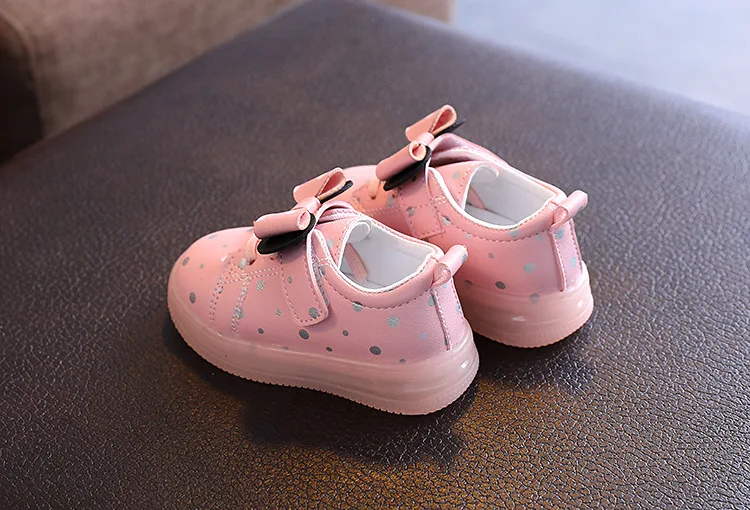 Детские светящиеся кроссовки, детская обувь принцессы с бантом для ...