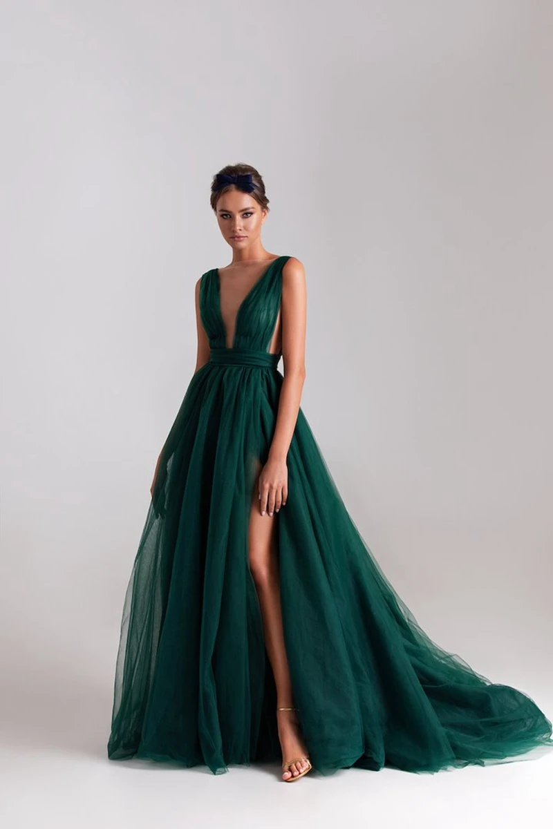 LORIE V-образный вырез трапециевидного силуэта тюлевые вечерние платья 2021 простой плиссированный халат для вечеринки свадьбы со шлейфом с Боковым Разрезом платья для вечеринки