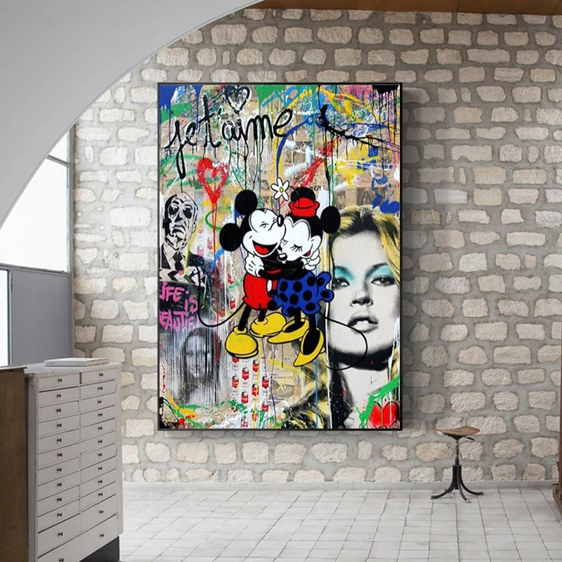 Картина на холсте с мультяшным роботом, рисунки, искусство на стене...