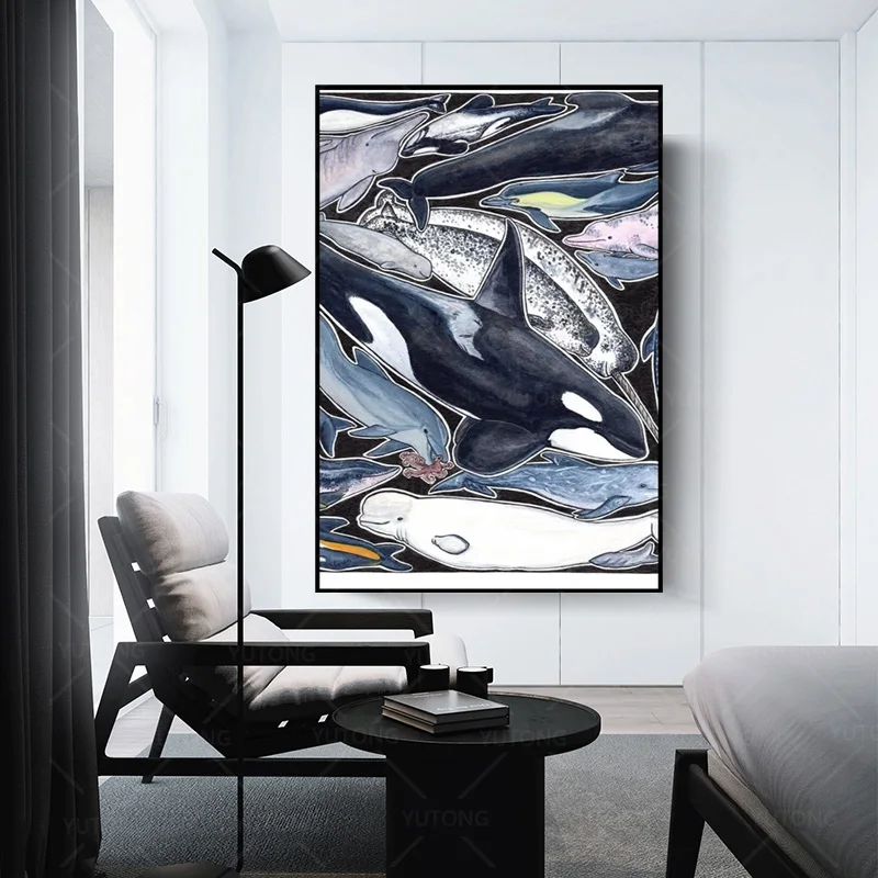 Плакат на холсте, HD печать, настенное искусство, абстрактная черно...