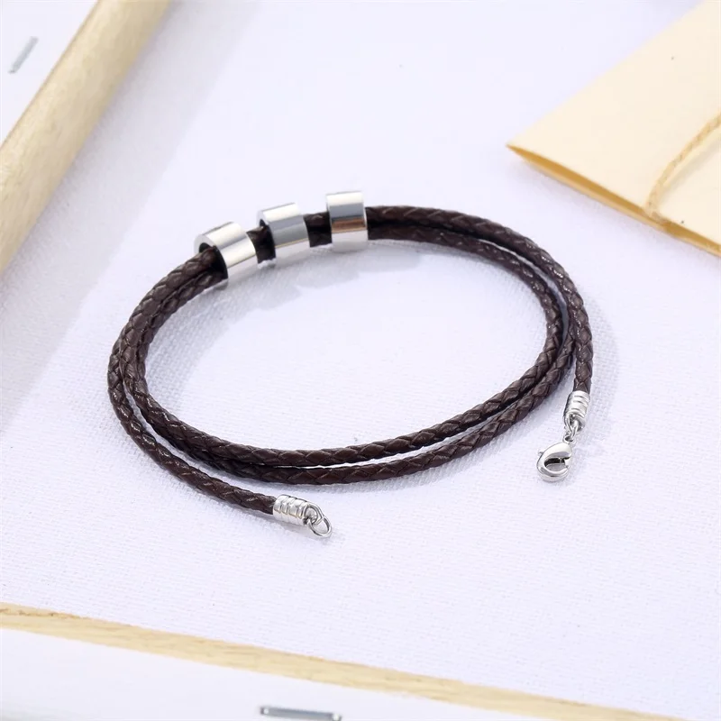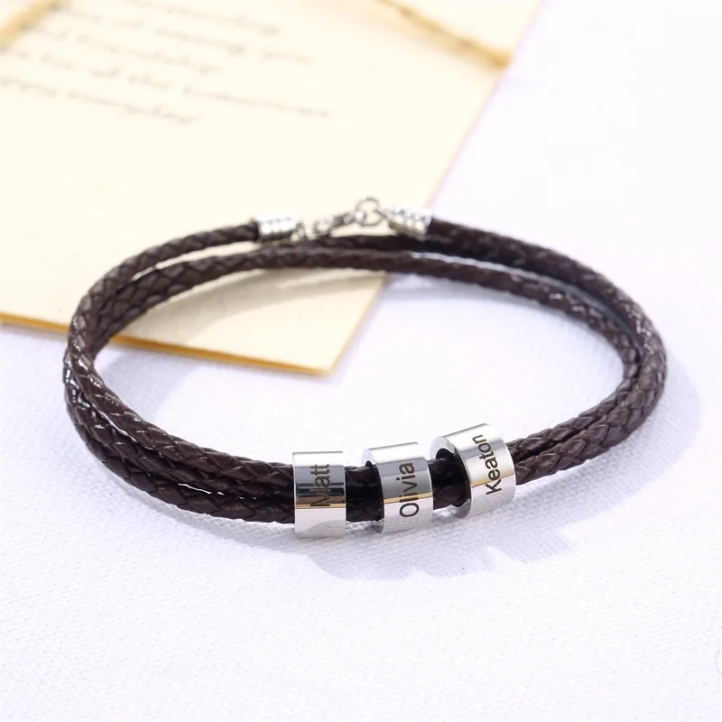 Персонализированный мужской плетеный браслет из натуральной кожи, бусины из нержавеющей стали на заказ, Шарм-браслет для мужчин с именем семьи