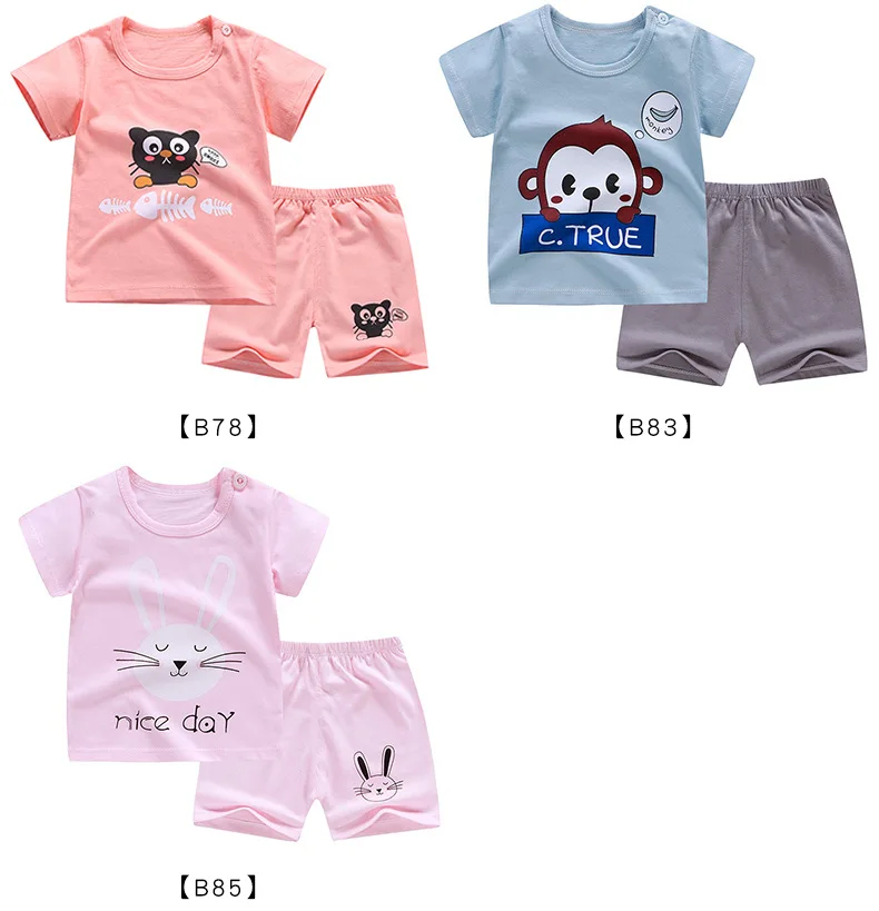 Летние пижамы для детей от 9 месяцев до 5 лет, комплекты из двух предметов для маленьких мальчиков и девочек, хлопковые наряды с коротким рукавом и круглым вырезом, костюмы, футболки, одежда