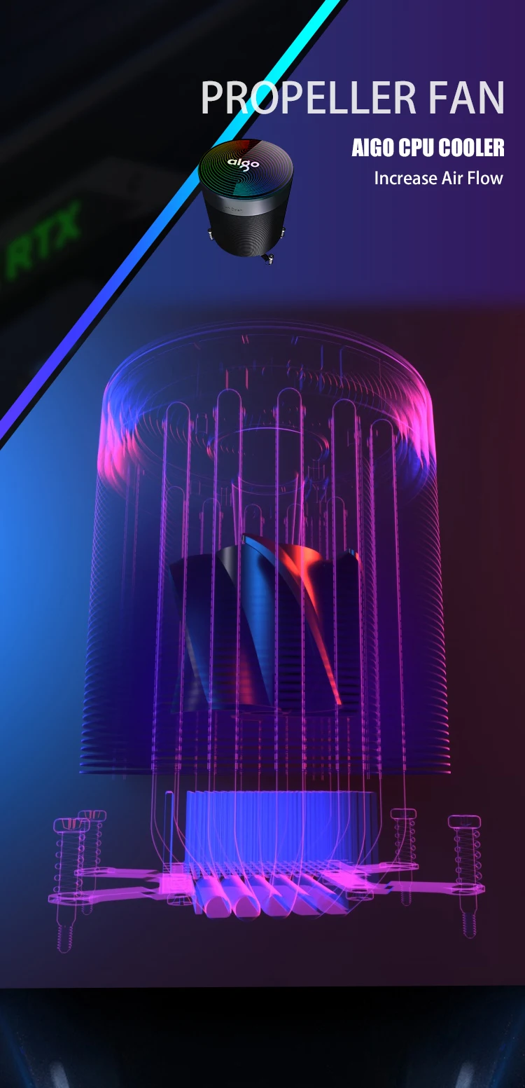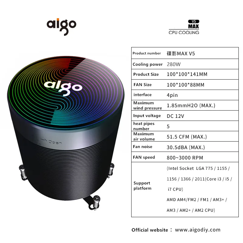 Кулер для процессора Aigo, ШИМ светодиодный rgb вентилятор, радиатор, 4 контакта, 5 труб из чистой меди, башенная система охлаждения, ARGB aura sync