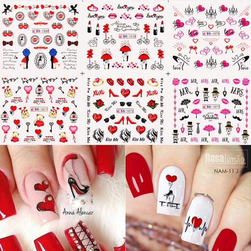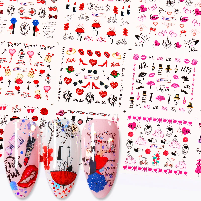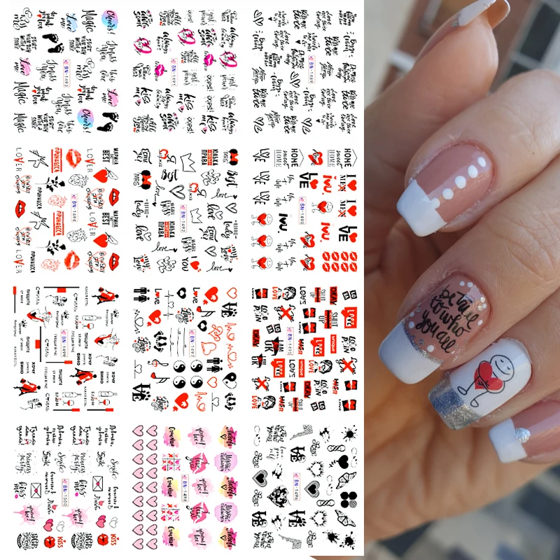 12 шт. в упаковке, на День святого Валентина, любящее сердце с цветочным рисунком для девочек, ползунки для ногтей маникюр водяные наклейки для ногтей искусство украшения наклейки водяных знаков