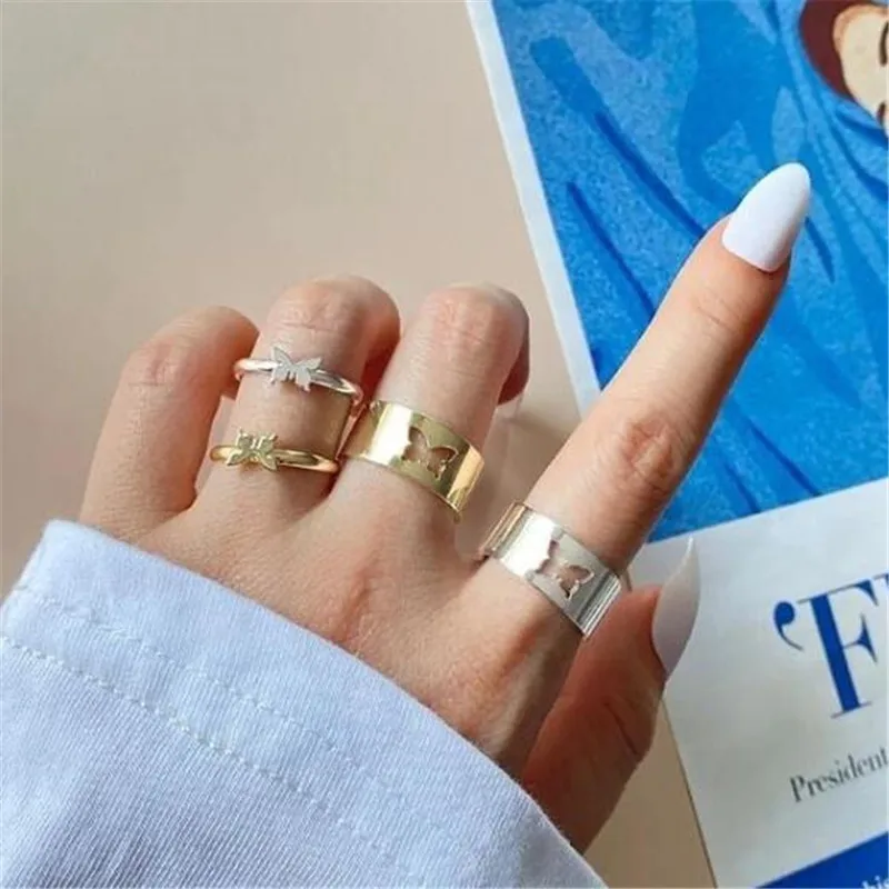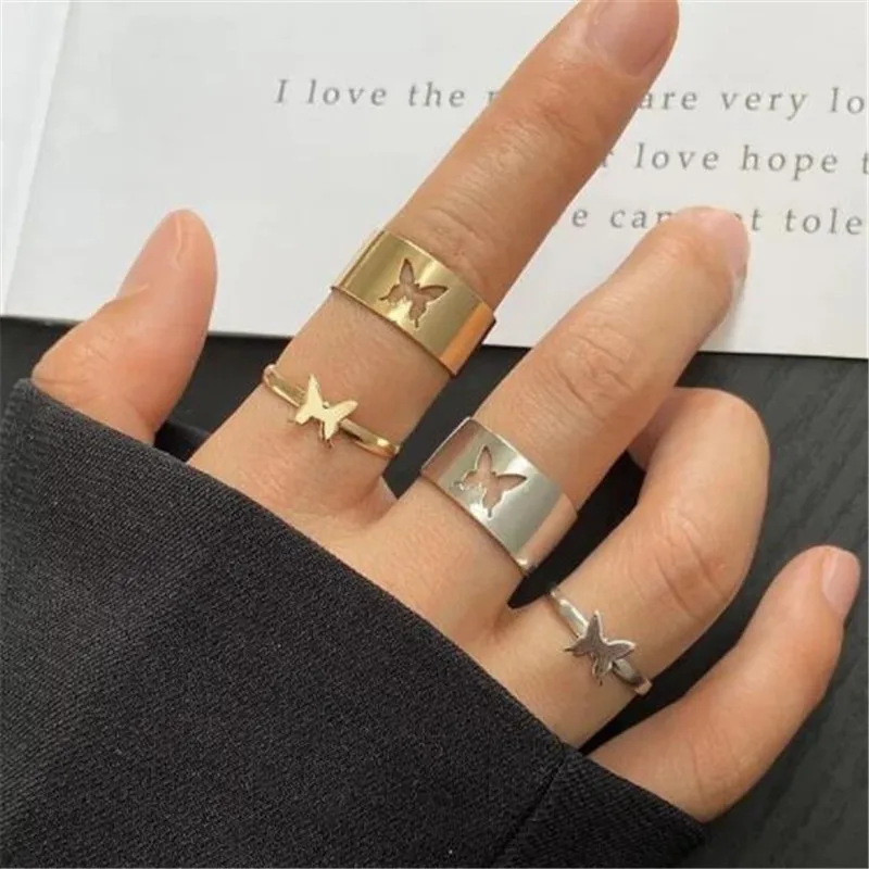 Масса 2021, модное простое кольцо с золотой бабочкой, набор колец для женщин и мужчин, обручальное кольцо дружбы, ювелирные изделия