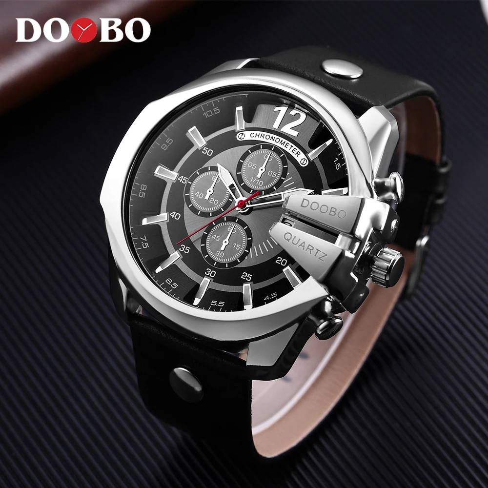 Часы мужские DOOBO, с кожаным ремешком и большим циферблатом