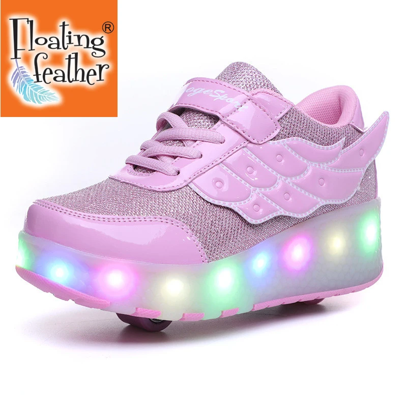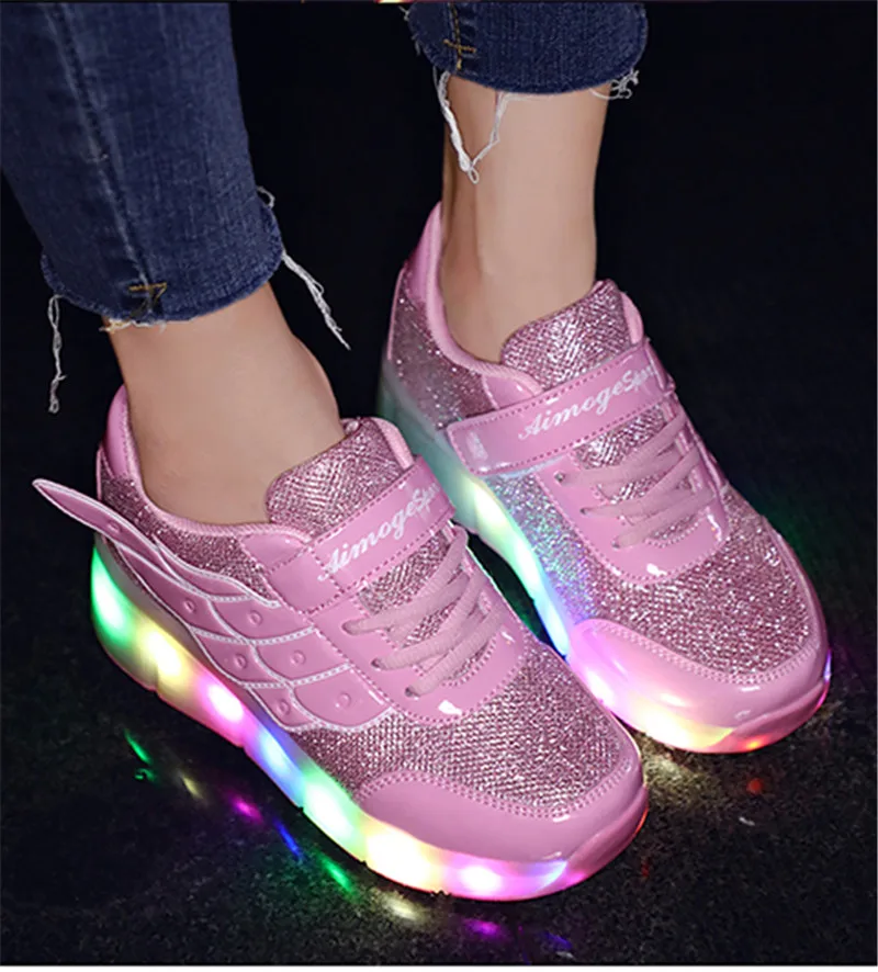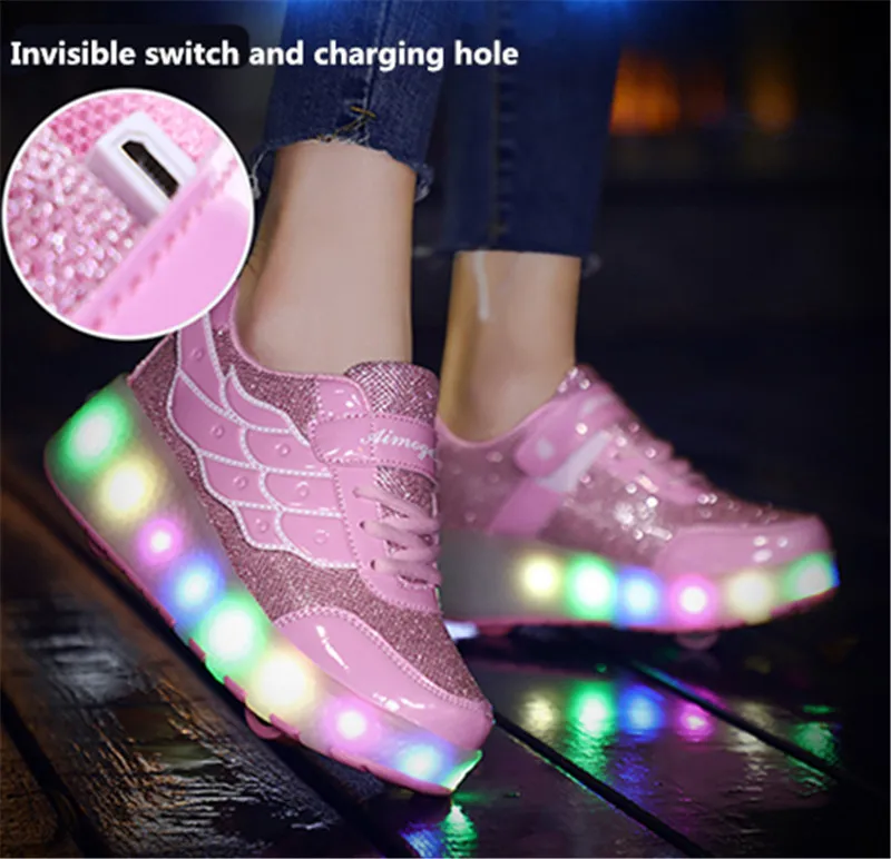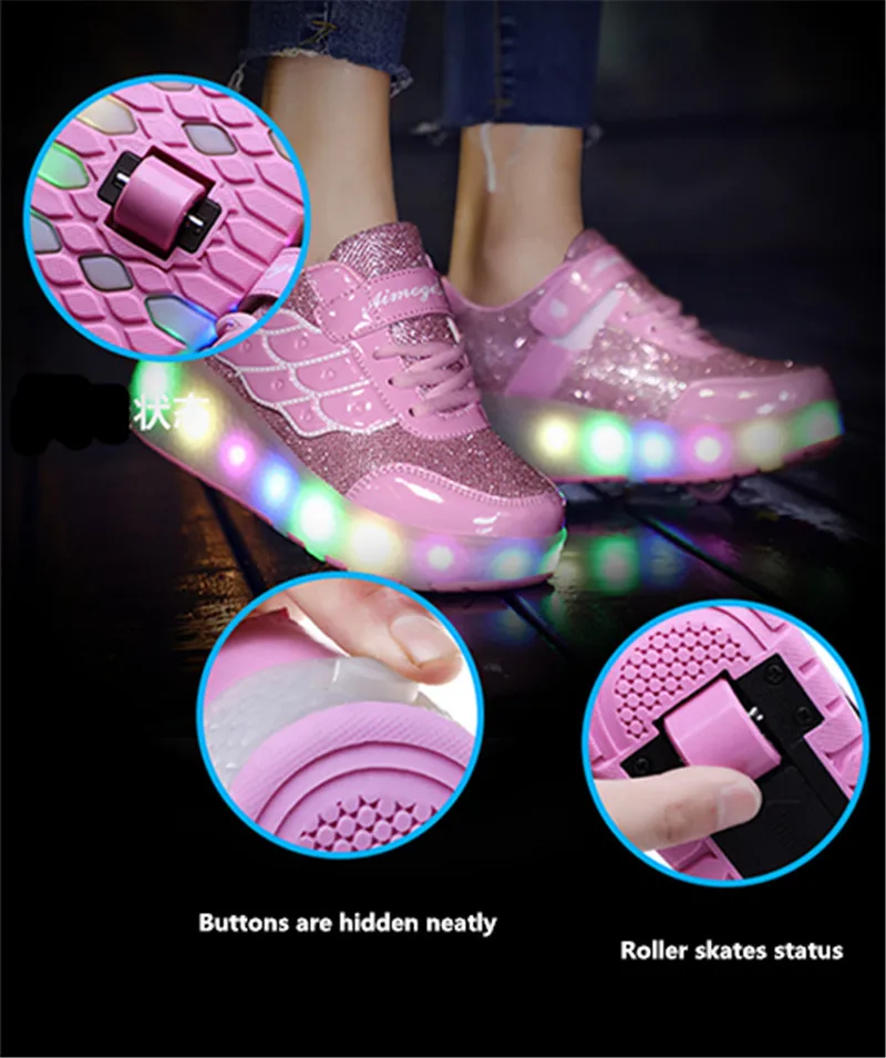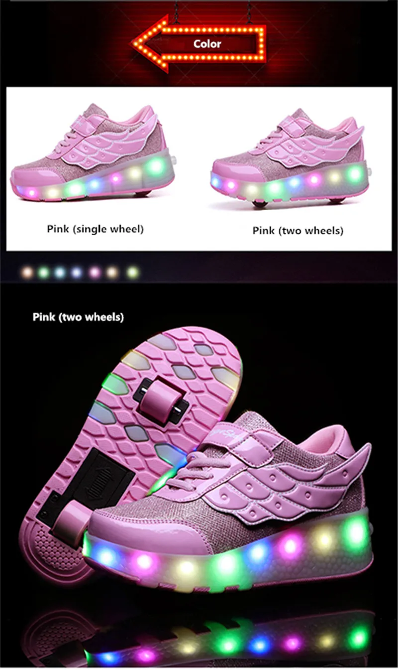 Детские светящиеся кроссовки с однимдвумя колесиками, зарядка через USB, светодиодная обувь, роликовые туфли для мальчиков и девочек, хороший подарок, 3 цвета