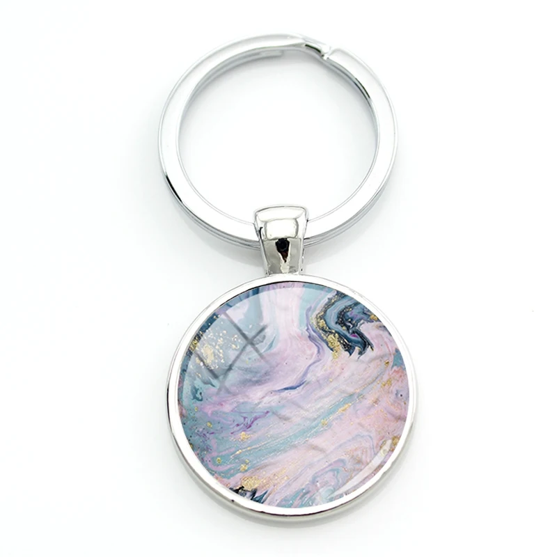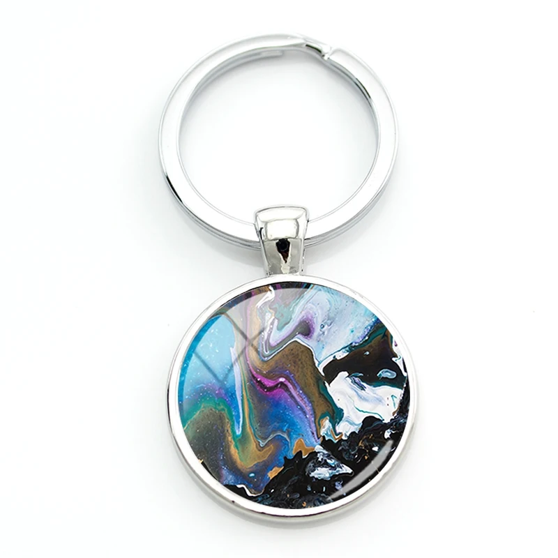 Цветные металлические брелоки с абстрактным изображением зыбучего песка, фотография текстуры с цветным песком, 25 мм стеклянный брелок для ключей, классические украшения