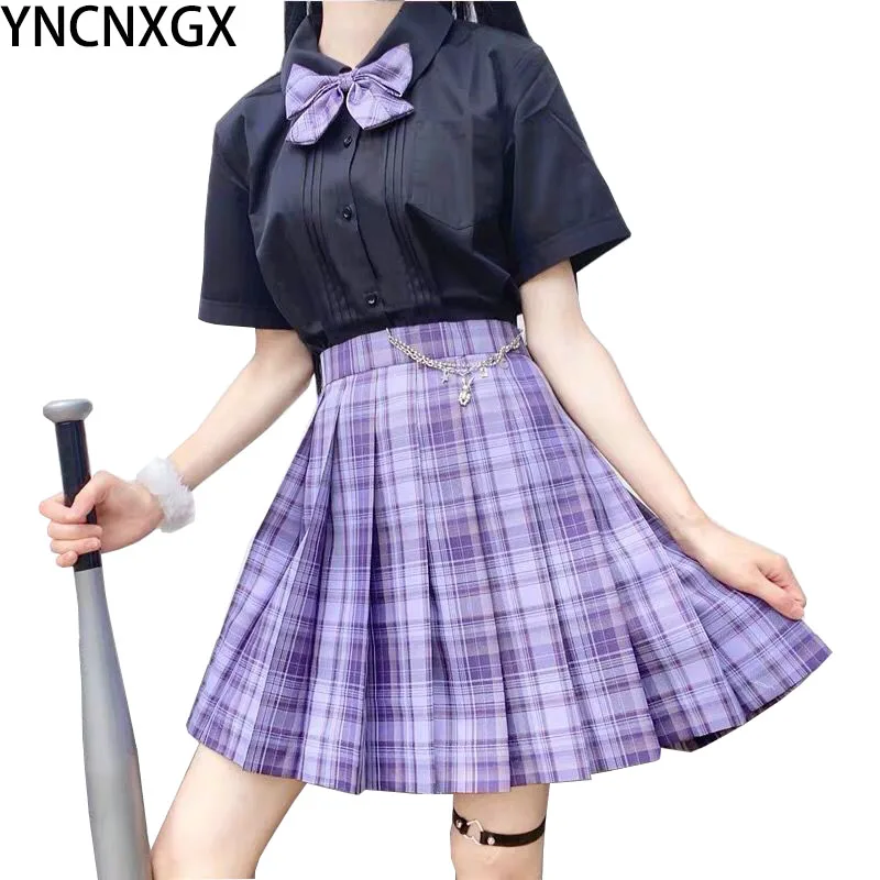 Клетчатая японская юбка JK, плиссированная юбка с высокой талией в стиле колледжа, школьная форма для школьниц