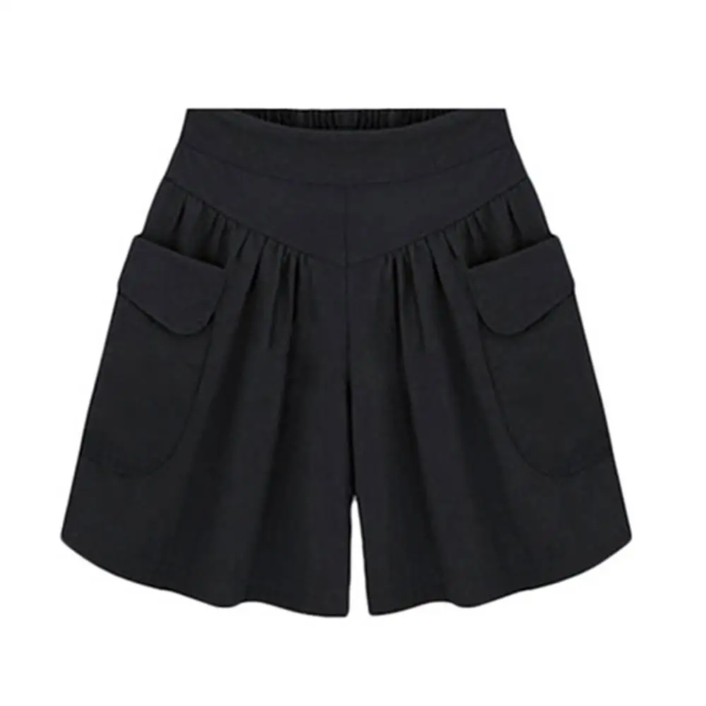Шорты женские с эластичным поясом, однотонные повседневные свободные с карманами и поясом на резинке, большие размеры, лето 80%