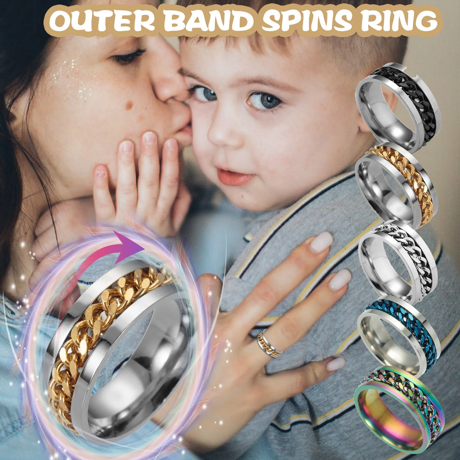 Это красивое кольцо-СпиннерВнутренняя лента заблокирована в основной полосе, которая может быть закручена вручную. МодныйДизайнерские костюмы для повседневной носки, идеальное кольцо, которое поможет вам пройти через стрессовые илиПодавляющие ситуации, не отвлекающие других илиВыглядит непрофессионально.