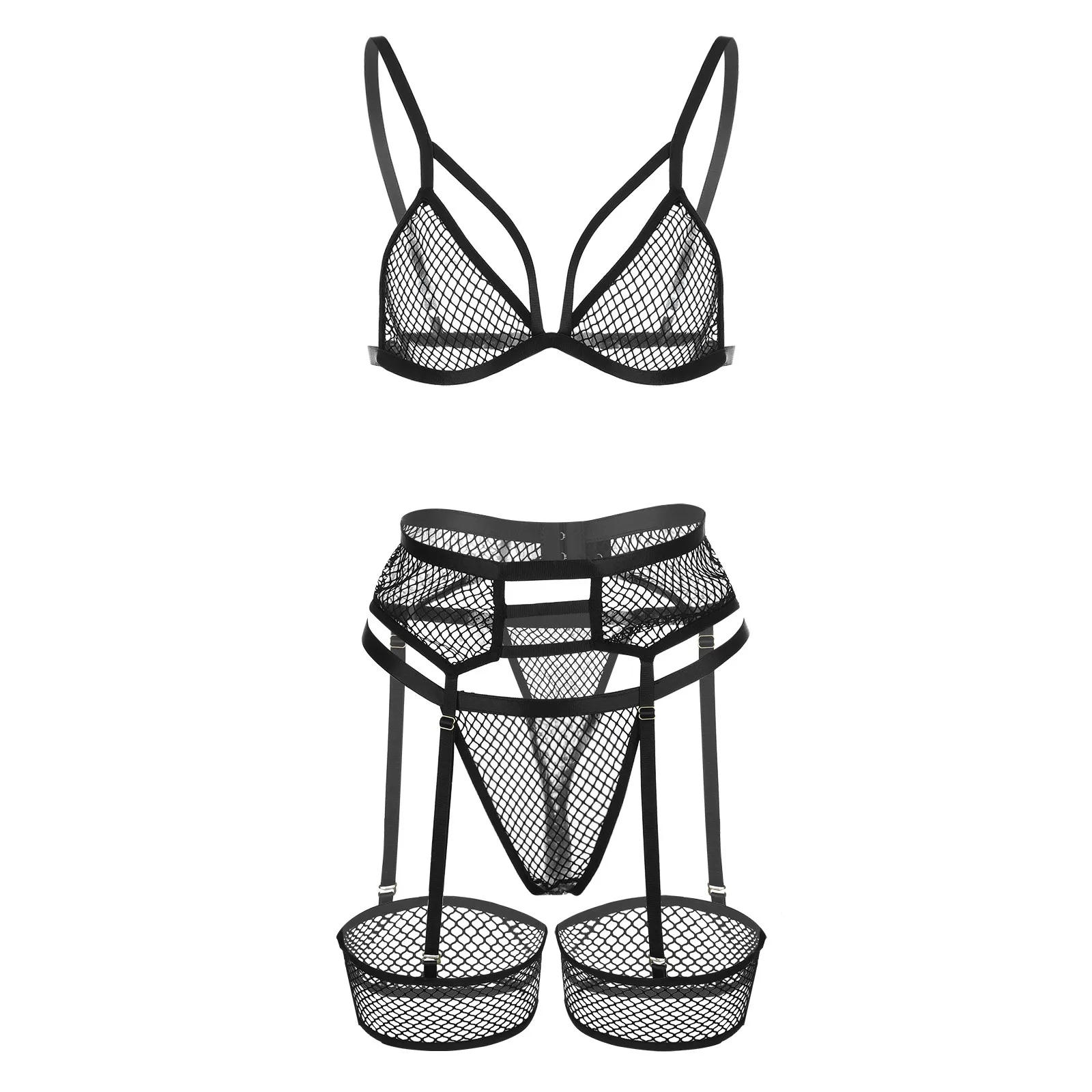 Размера плюс сексуальное кружевное нижнее белье для женщин Для женщин Беспроводной сетчатый бюстгальтер сексуальные трусики-Тонги комплект кружевной бюстгальтер с подвязками прозрачный Lenceria Эротическое Mujer 3XL