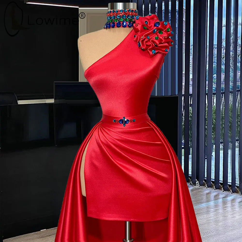 Красный сексуальный топ с высоким воротом Сатиновые с разрезом Русалка вечернее платье с кристаллами Простые Длинные вечерние платья 2021 платье партии De Mariage
