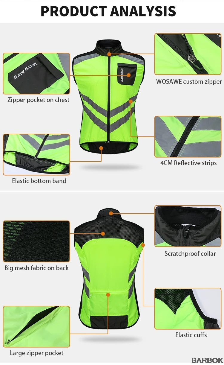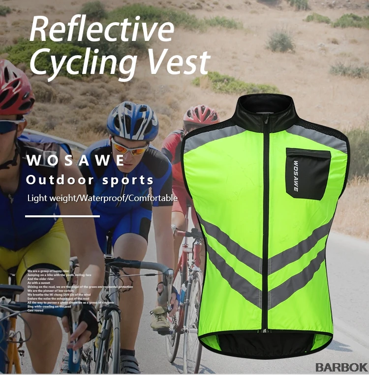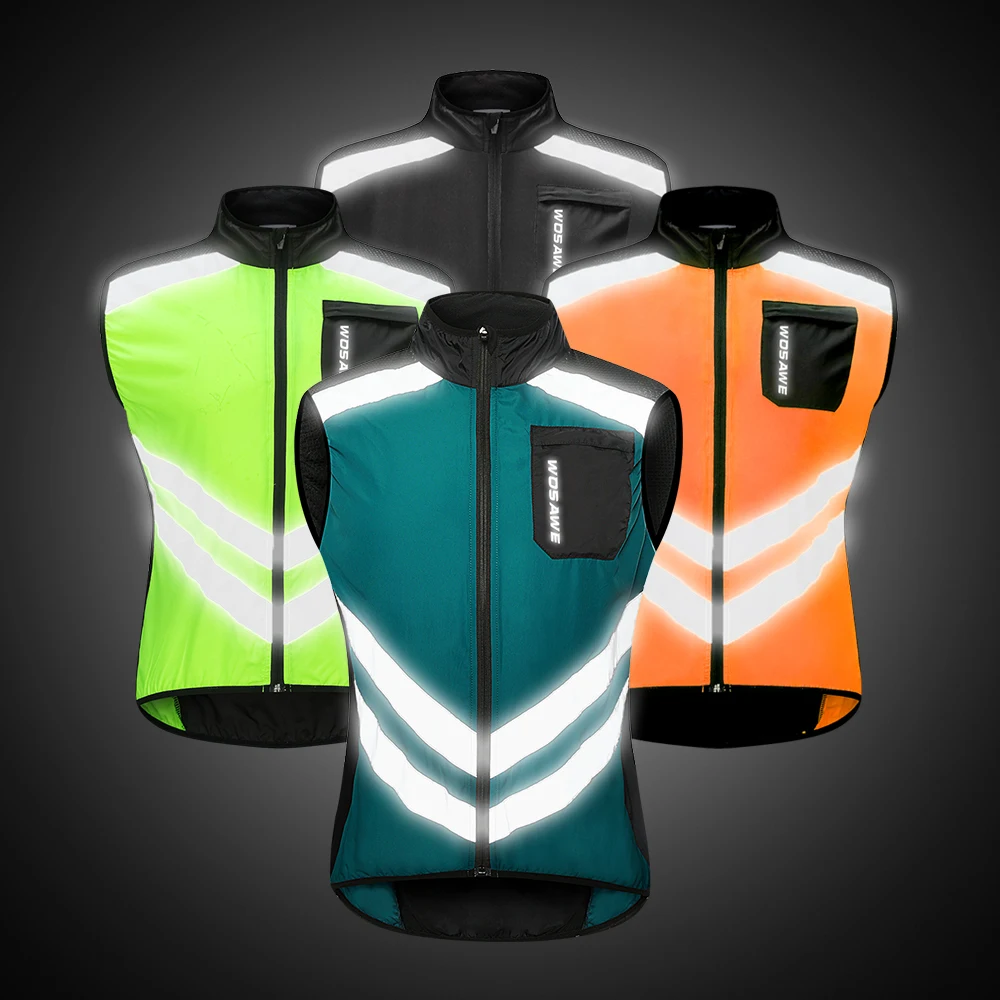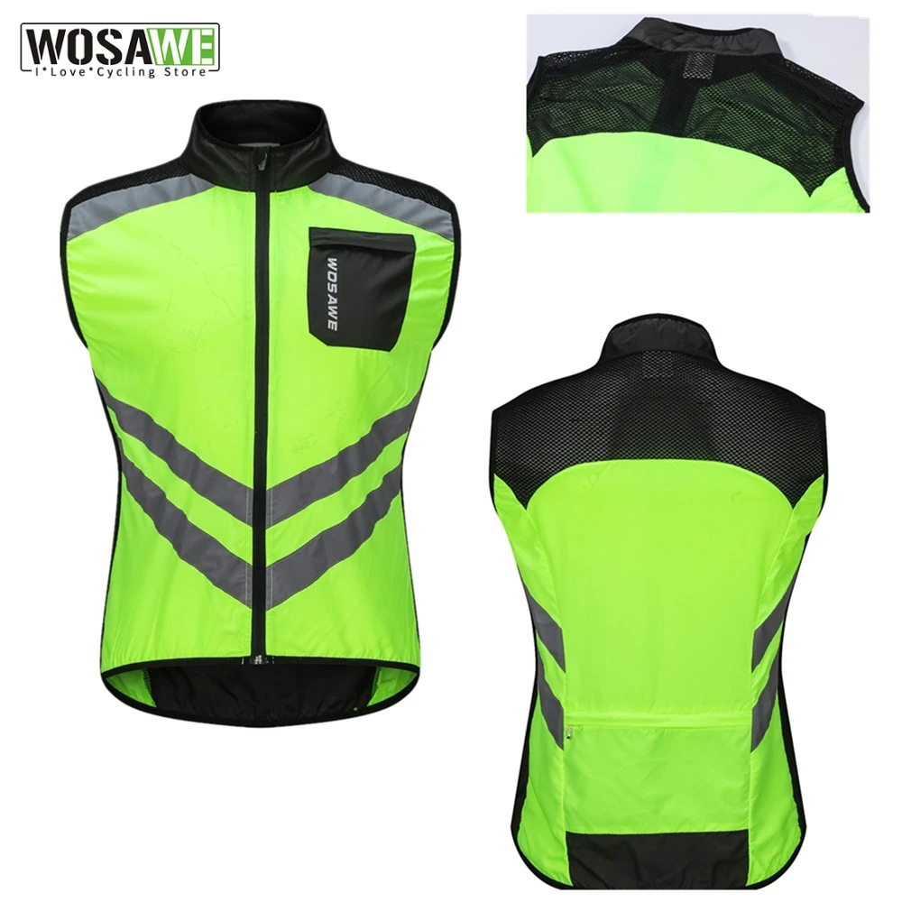 WOSAWE светоотражающий жилет ветрозащитный Безопасный Жилет для бега мотоцикл жилет MTB езда на велосипеде велосипедная куртка без рукавов