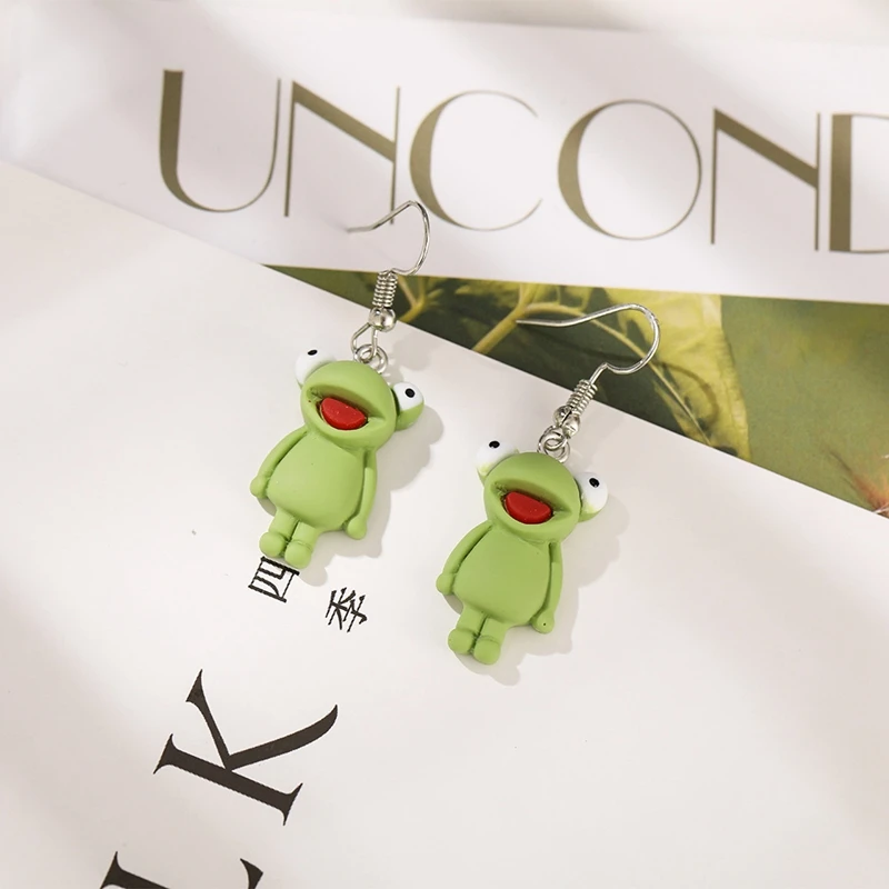 Серьги-подвески с зеленой лягушкой для женщин, милые аксессуары, ювелирные изделия, розовая лягушка, простые маленькие Висячие серьги, трендовые товары, 2021