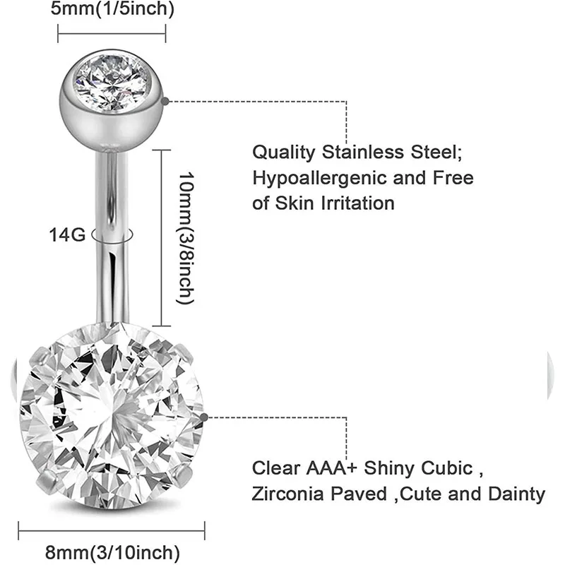 Хрустальные кольца для пупка, кольцо для пупка, циркониевая штанга,...