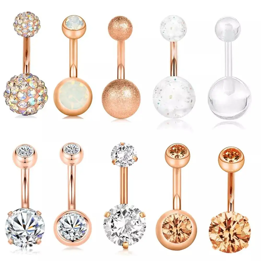 Комплект для пирсинга живота с кристаллами, комплект колец для пупк...