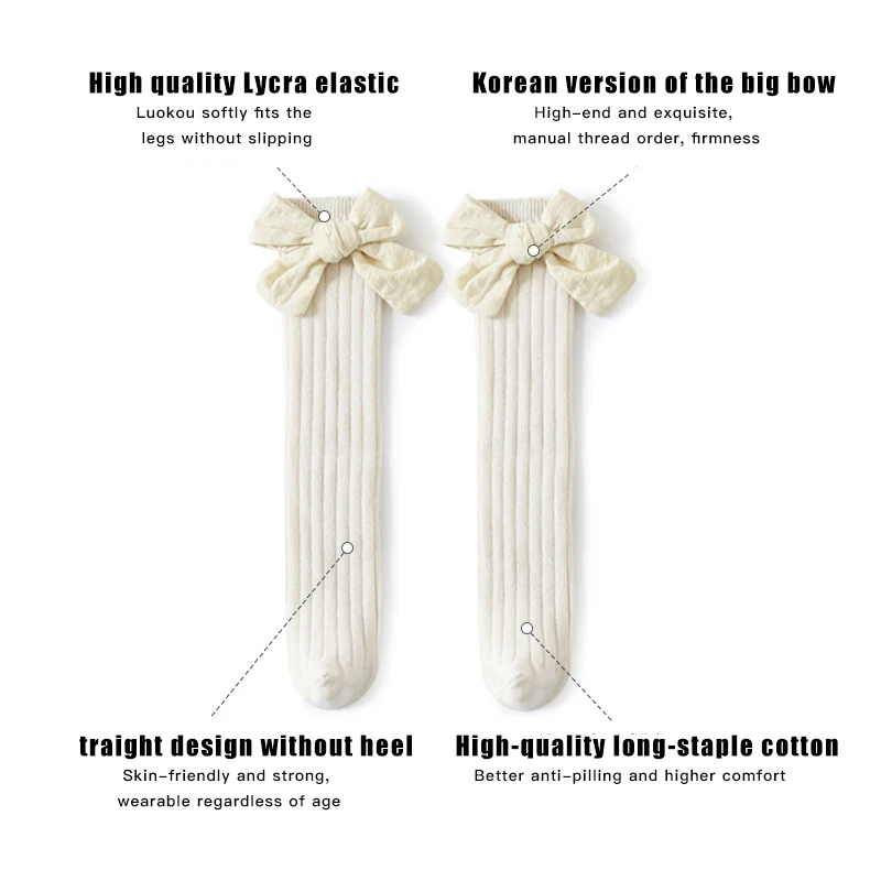Носки для маленьких девочек, новые мягкие носки до колен с большим бантом для маленьких девочек, детские носки из чесаного хлопка без пятки, свободные носки