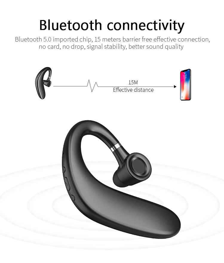 3. Сверхлегкий и удобный дизайн, эргономичные вкладыши в форме ушей и петли для ушей обеспечивают комфорт и отсутствие тяжелых ощущений даже после длительного ношения, рукоятка с поворотом на 180 градусов поворачивается за угол и подходит для этой гарнитуры в правом или левом ухе.