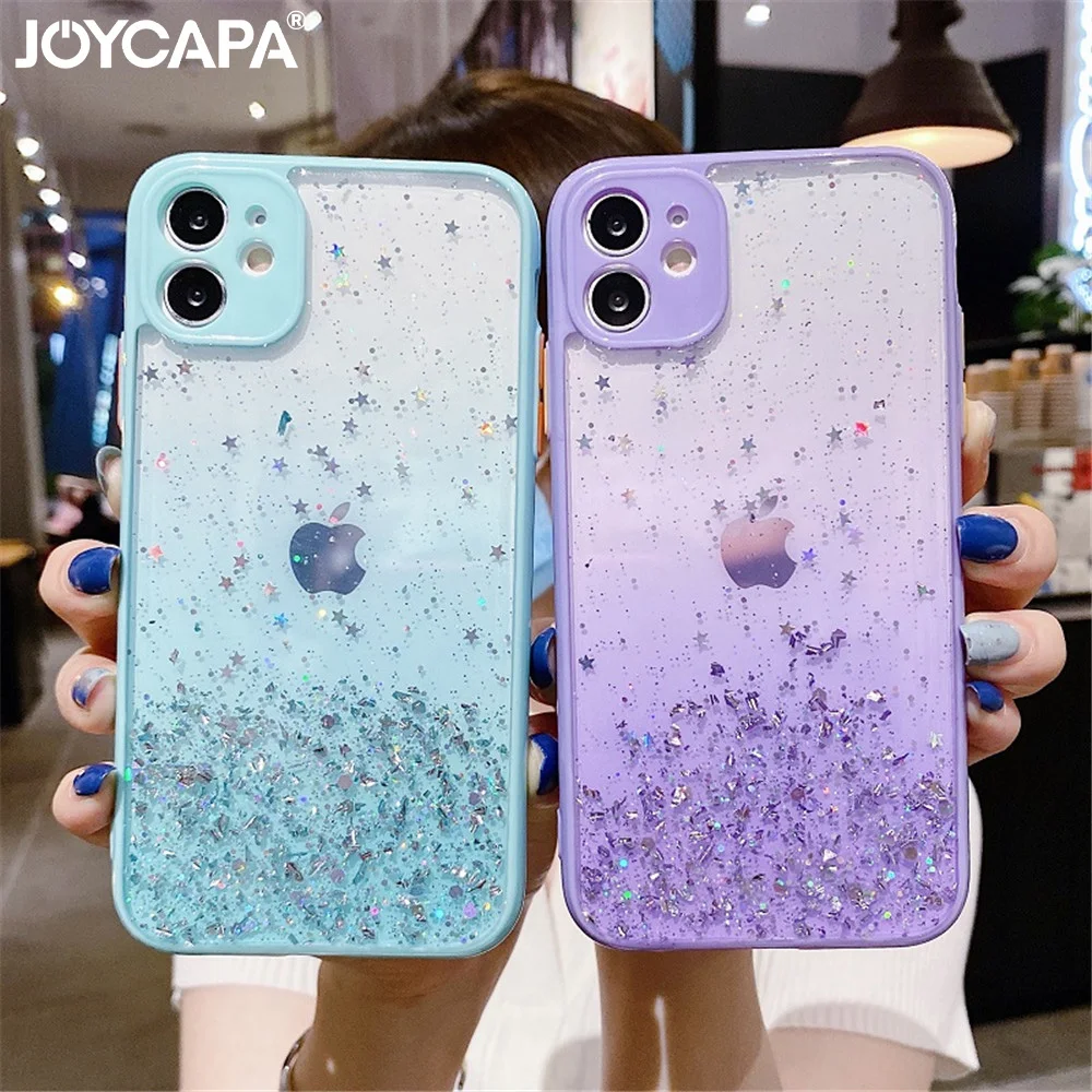 Блестящий чехол со звездами для телефона iPhone 12 11 Pro Max XR X XS 6 7 8 Plus SE, противоударный прозрачный мягкий чехол с блестками