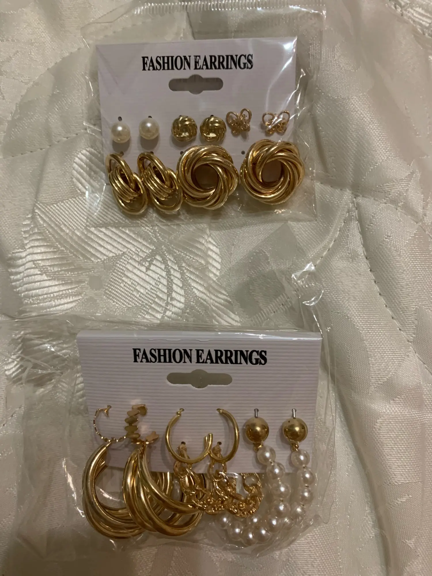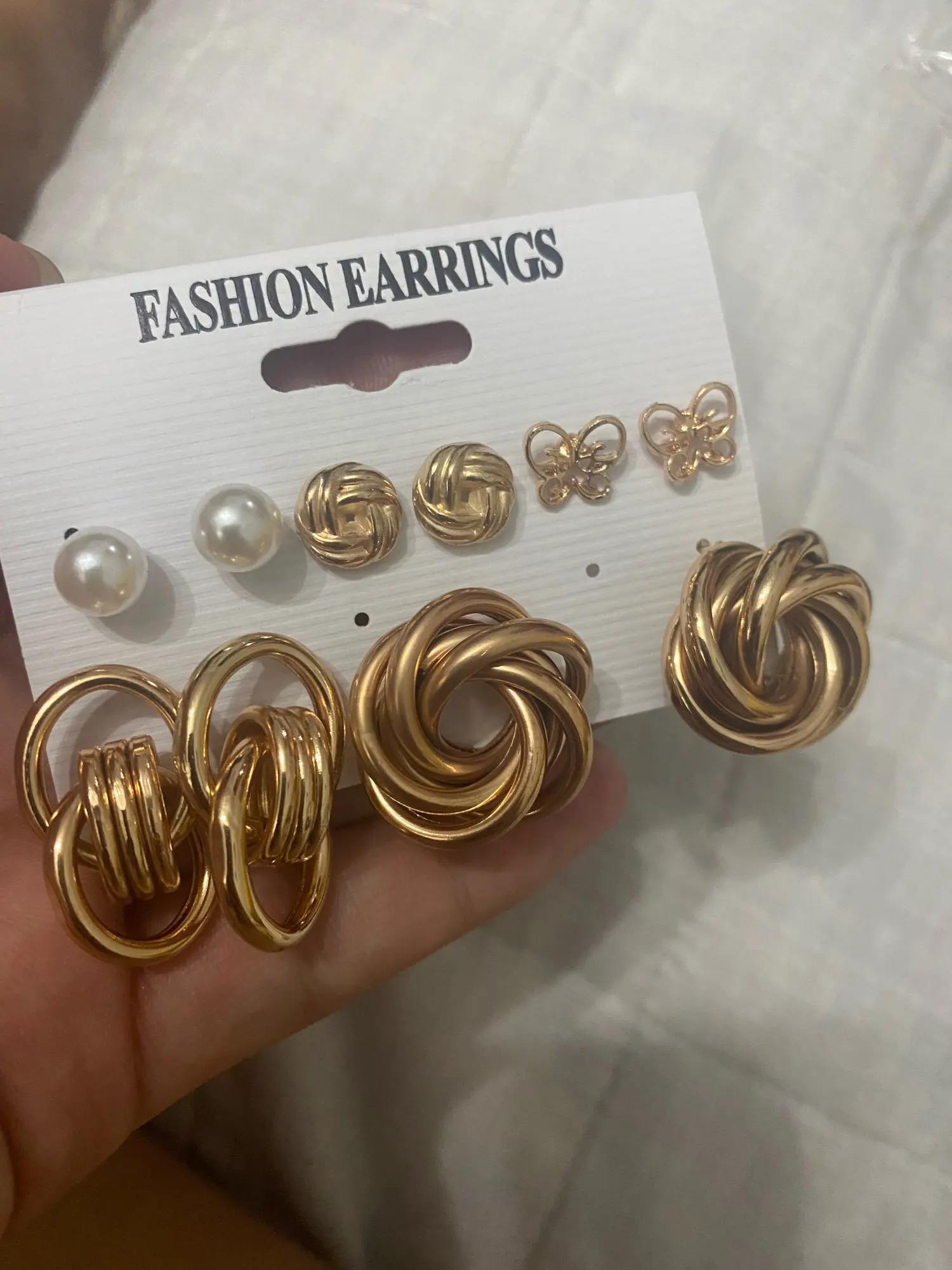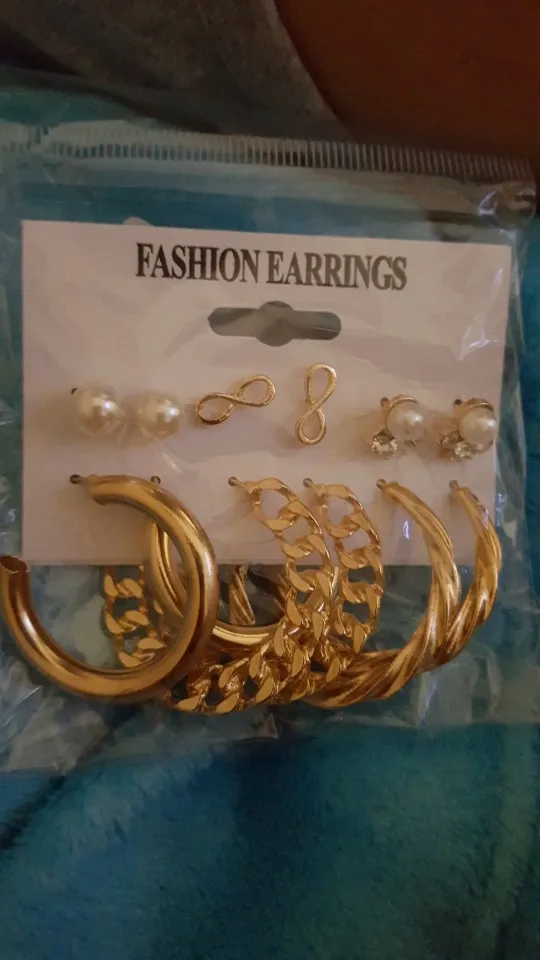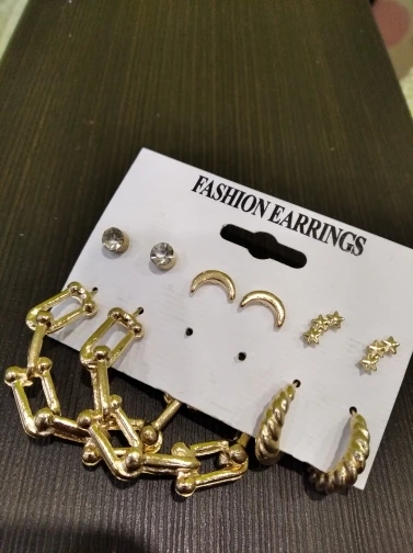 крупные сережки прекрасны, а вот золотые гвоздики после первого ношения потеряли цвет. но за 51 руб это не страшно рекомендую!