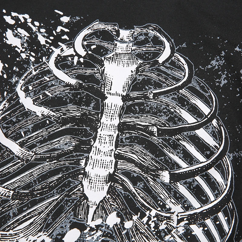 Женский топ с коротким рукавом, винтажный укороченный топ в стиле 90-х, с принтом скелета, Y2k, летний черный топ, готика, Харадзюку
