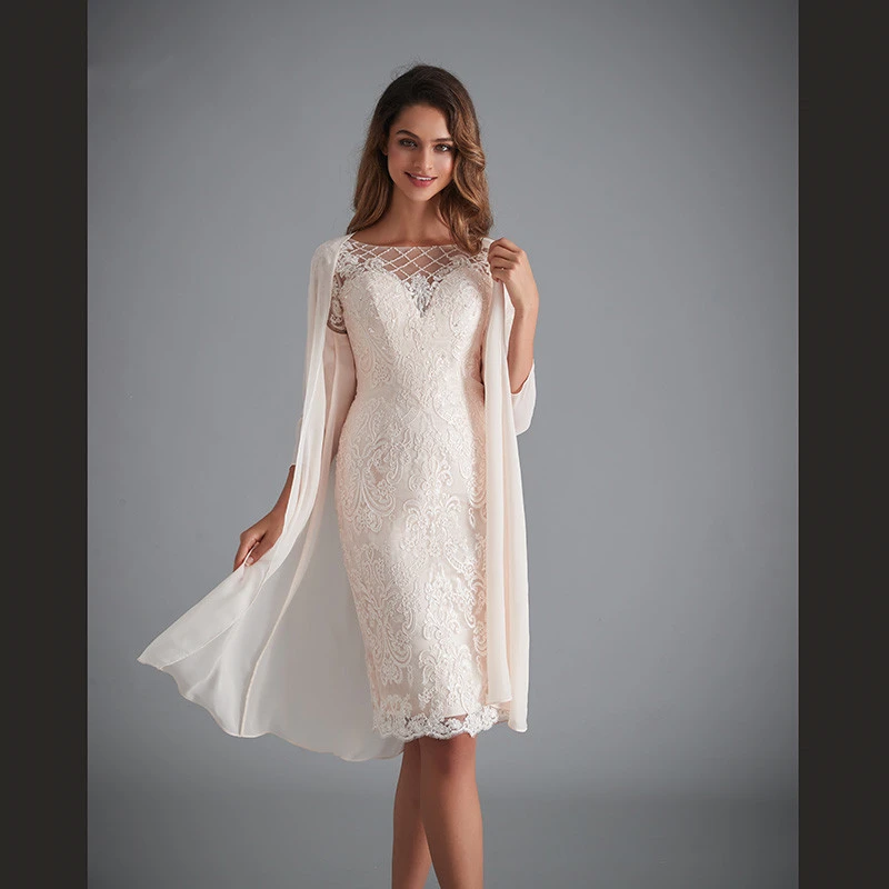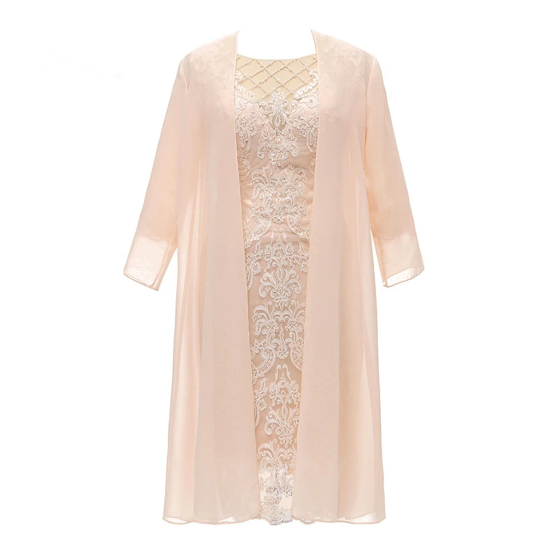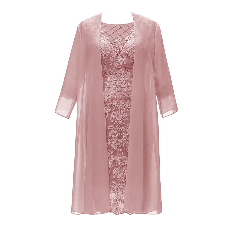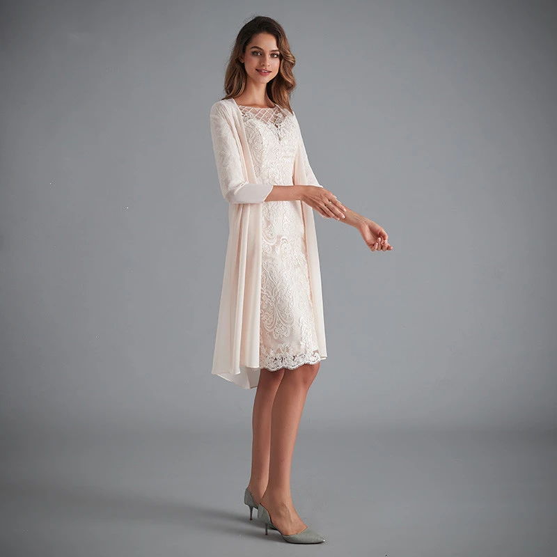 Розовые шифоновые платья для матери невесты, элегантные кружевные облегающие платья для жениха с рукавом 34 и жакетом, 2 предмета