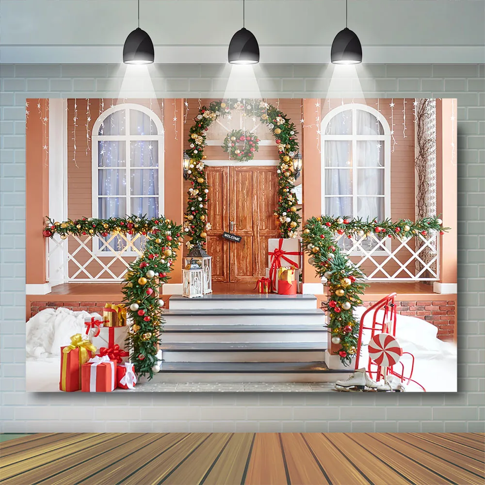 Рождественский фон с изображением деревянного дома для детской фотосъемки снежные Декорации для дня рождения праздника баннера венка реквизит для детской фотостудии