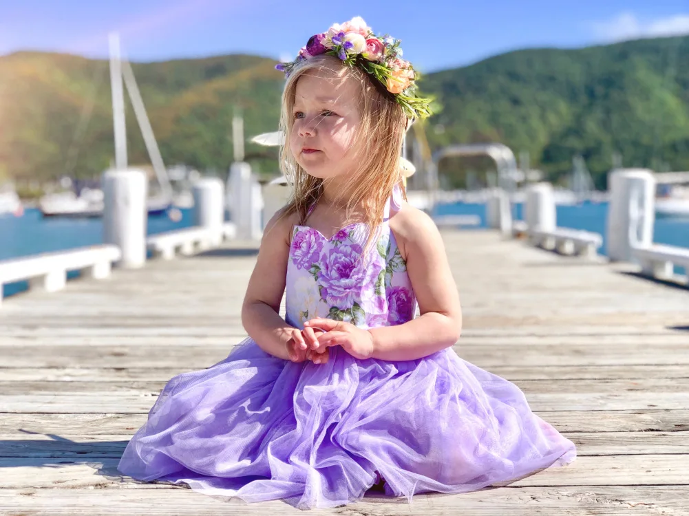 Платье принцессы Детское, без рукавов, с цветочным принтом