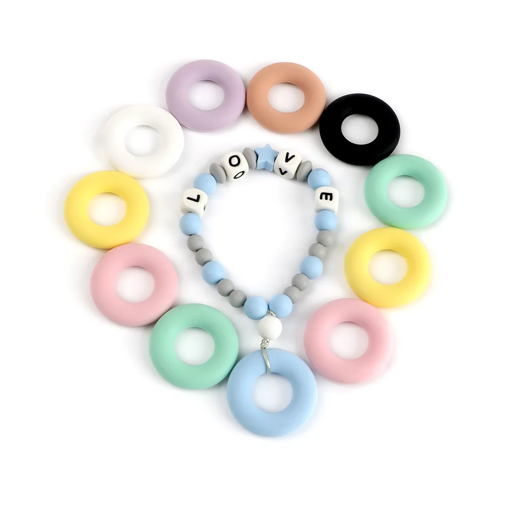 Изделие: силиконовые бусины с пончиками Размер: 43 × 43 × 9 мм Вес: около 10 г/шт. Загрузка: 5 шт. изделие: цепочка для ожерелья/соски/браслет/Детские игрушки/деревянный Прорезыватель функции: прорезывание зубов для детей
