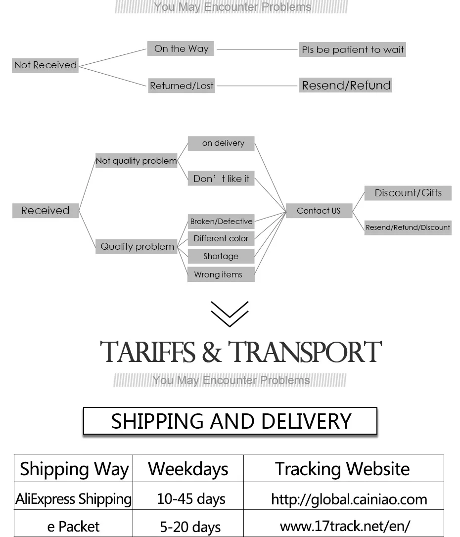 2. Для продуктов и услуг и экспресс-доставки, вы можете дать отзывы нашей клиентской службе в срок, и наша служба поддержки клиентов поможет вам решить проблему как можно быстрее.
