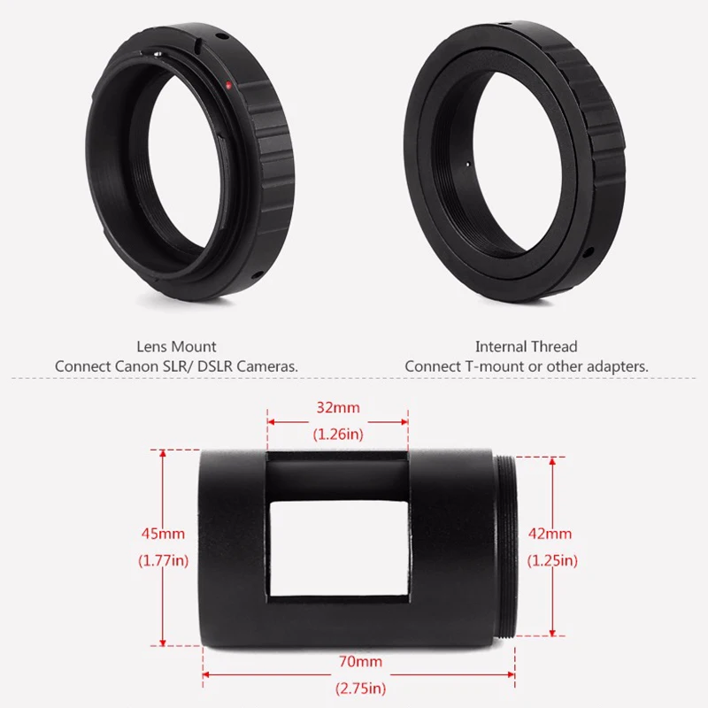 Труба адаптера для фотоаппарата и Т-образное кольцо для фотоаппарата Nikon Canon Sony Pentax SLRDSLR и астрономического телескопа