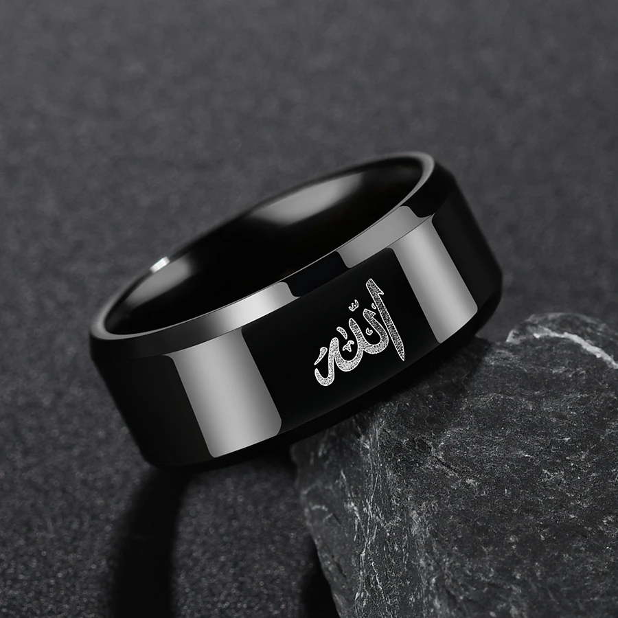 Модное мужское черное мусульманское кольцо ELSEMODE 8 мм из титанов...